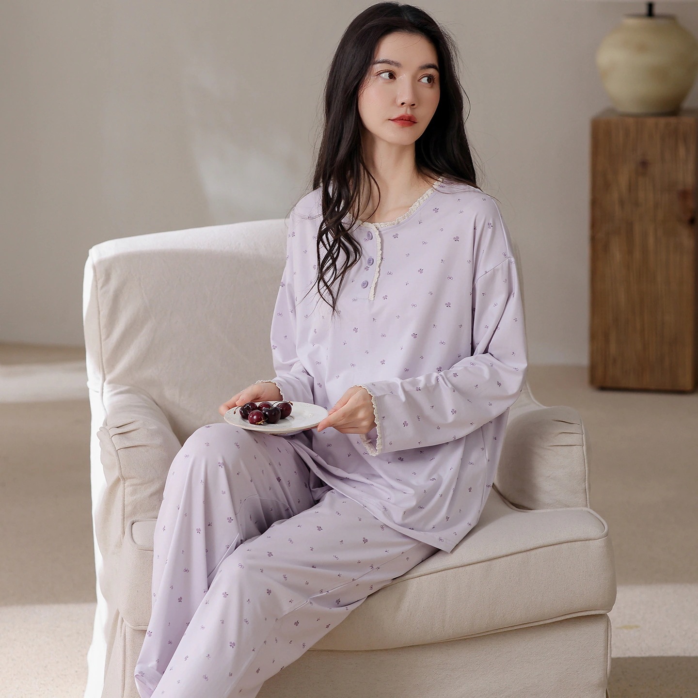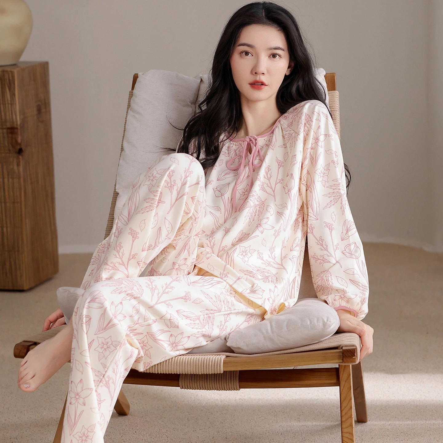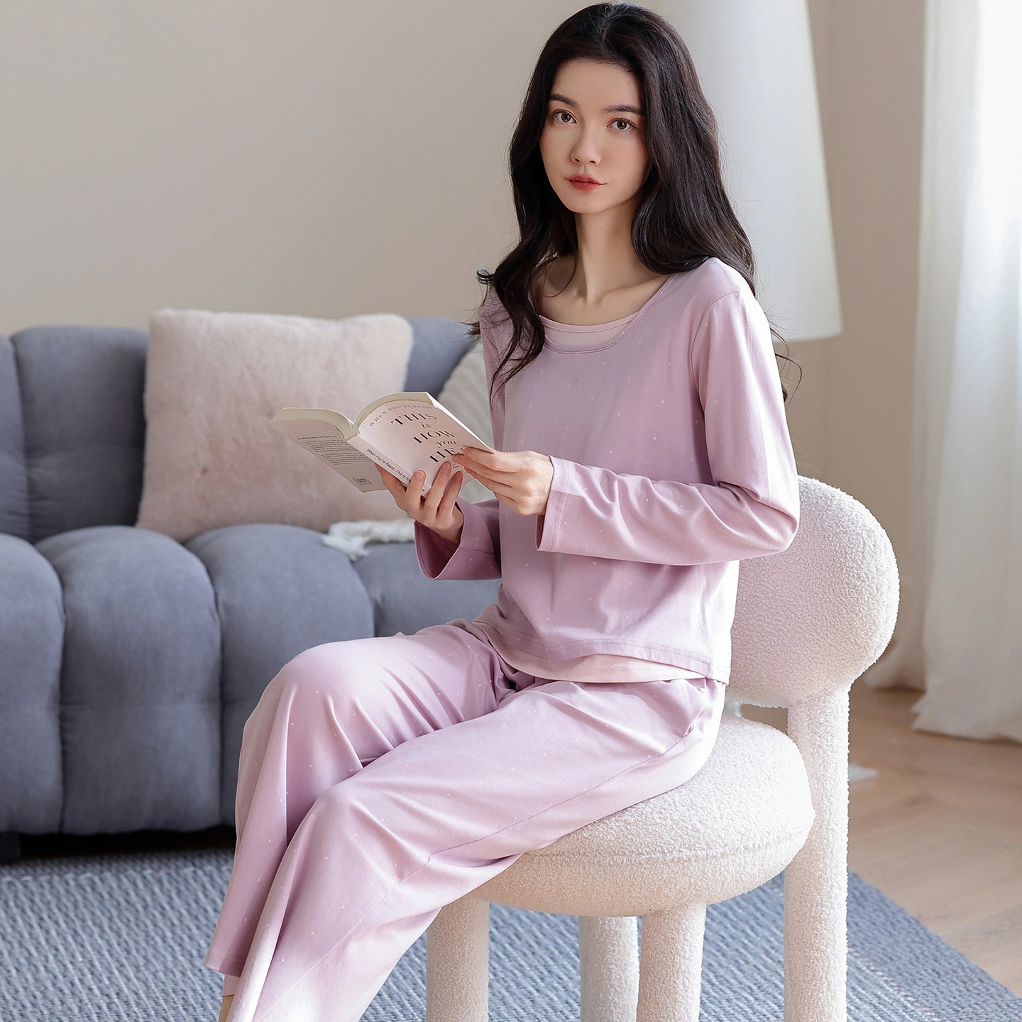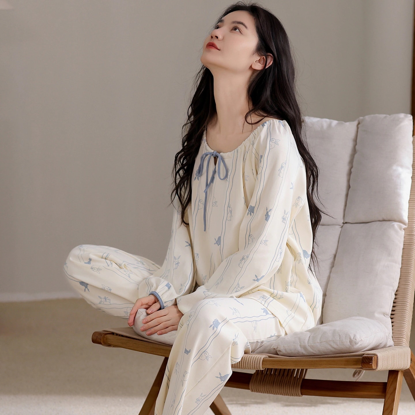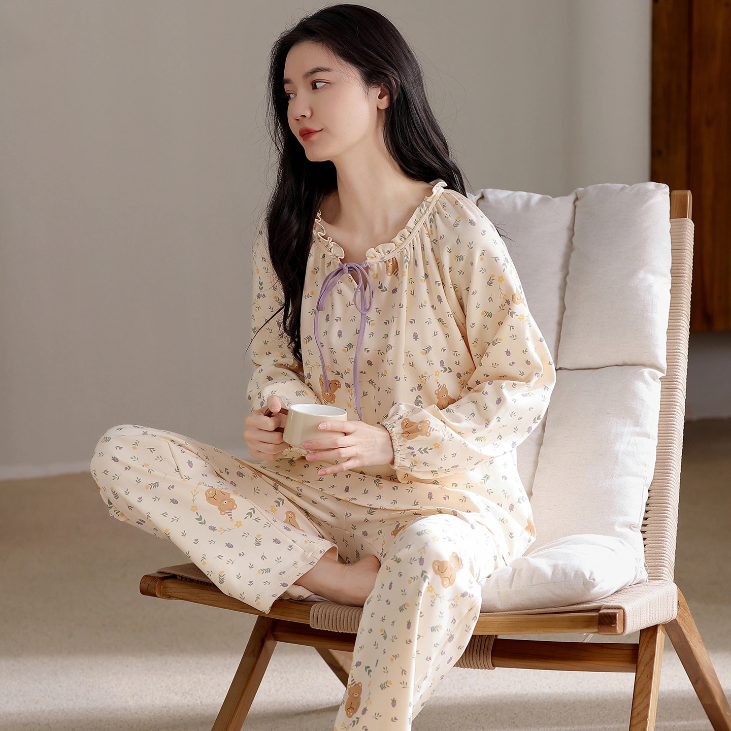 2026 春夏 パジャマ セットアップ 綿 新作 ラウンドネック 長袖 シンプル ルームウェア セットアップ 上下セット レディース