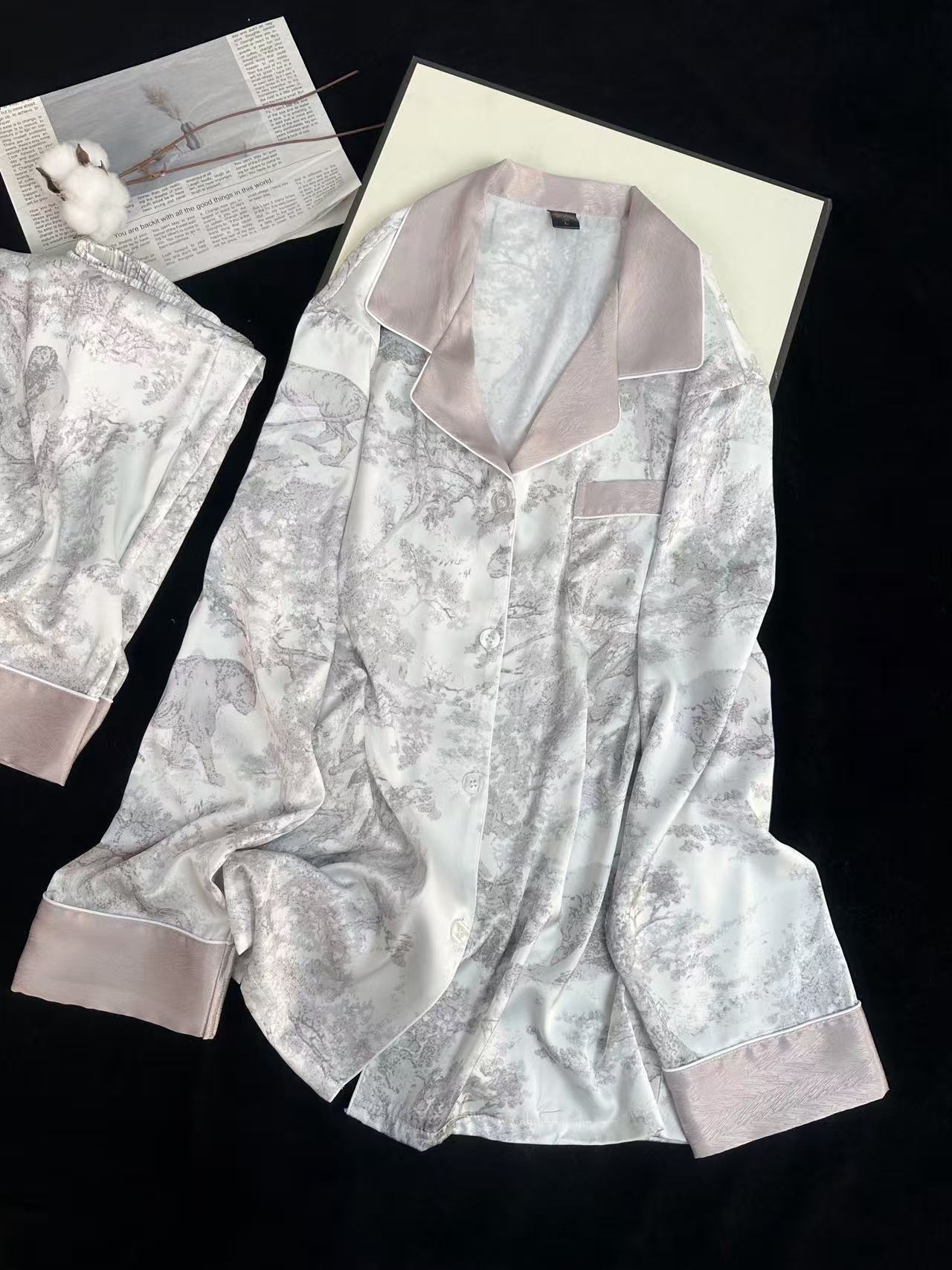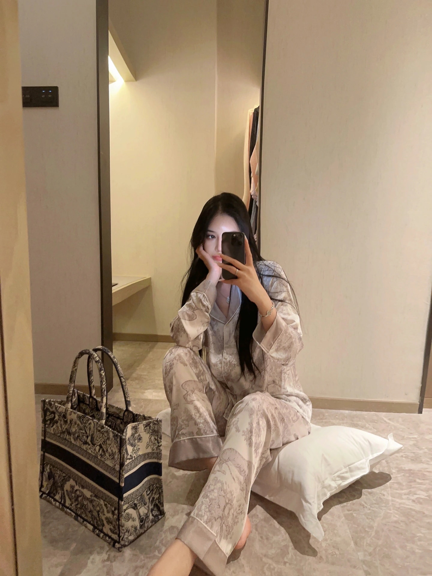 2026 春夏 パジャマ セットアップ アイスシルク パジャマ 薄手 長袖 気質 ルームウェア 上下セット レディース