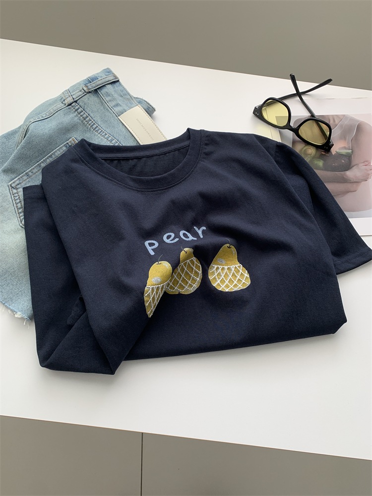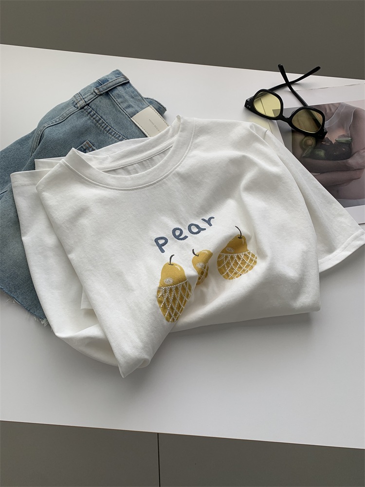 韓系減齢アニメプリントtee涼感雪花綿鸭梨アルファベット半袖女性夏薄手ゆるいtシャツ
