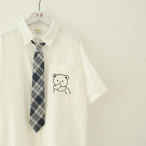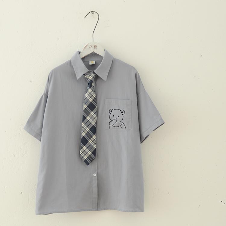 乙女カレッジ風 かわいい刺繍半袖シャツ ゆったりポロシャツ3