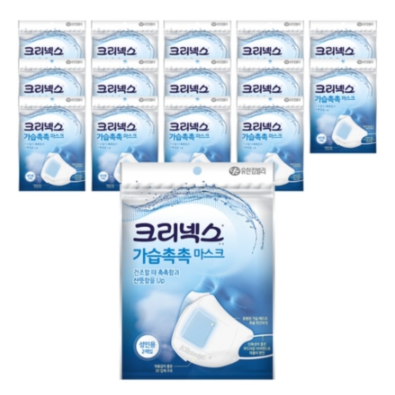 クリネックス加湿しっとりマスク 大人用 ホワイト 2枚入×15個セット 花粉対策 黄砂対策 乾燥対策 加湿パッド付き 3D立体構造 携帯用