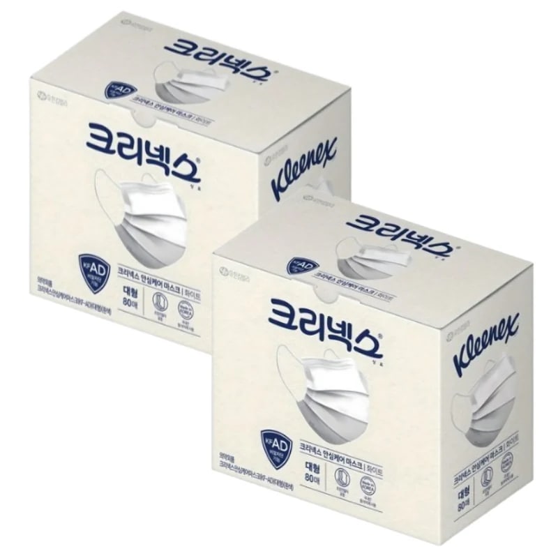 クリネックス安心ケアマスク 大きめ KF-AD 大人用 ホワイト 80枚入×2個 花粉対策 黄砂対策 飛沫対策 デイリー用 不織布マスク まとめ買い