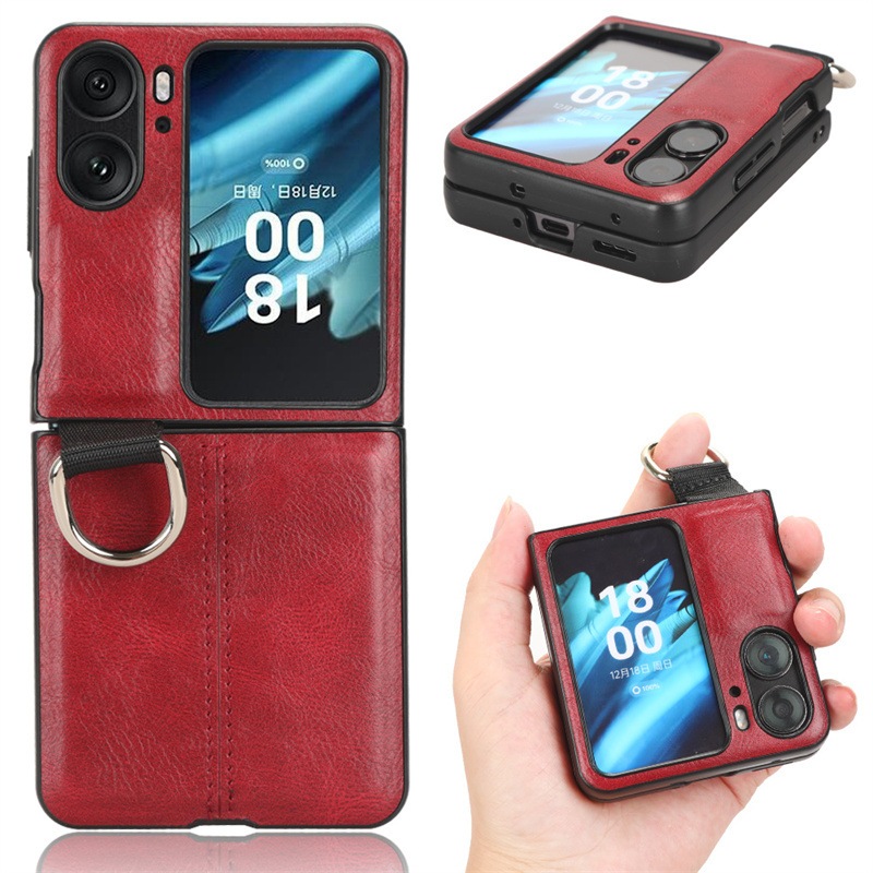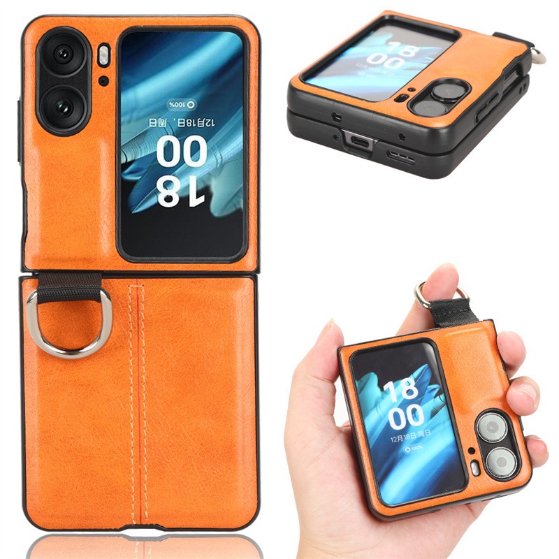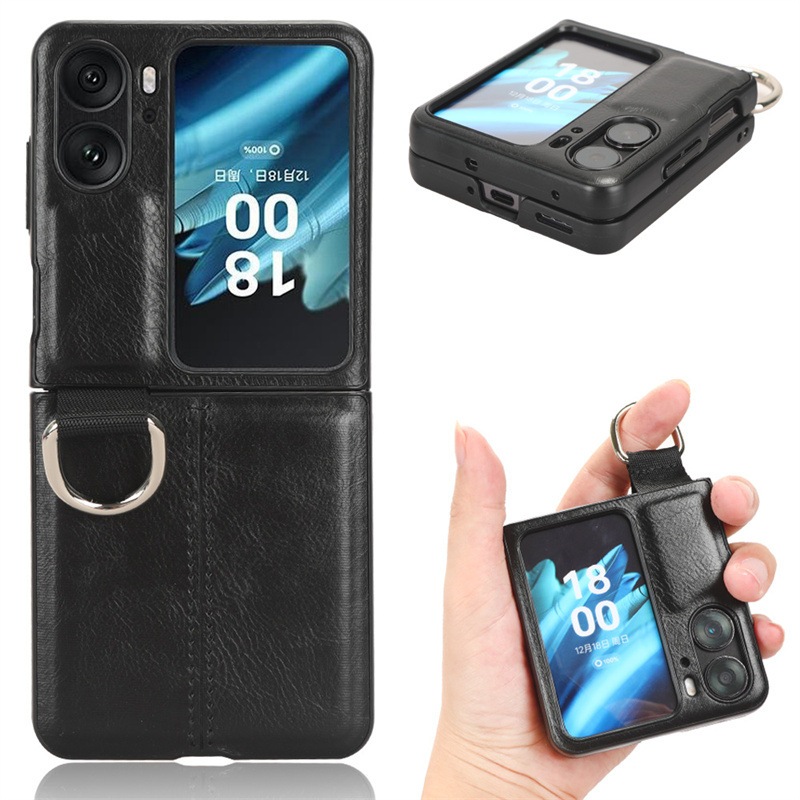 OPPO Find N2 Flip 対応 リング付き 貼り皮 折畳みケース