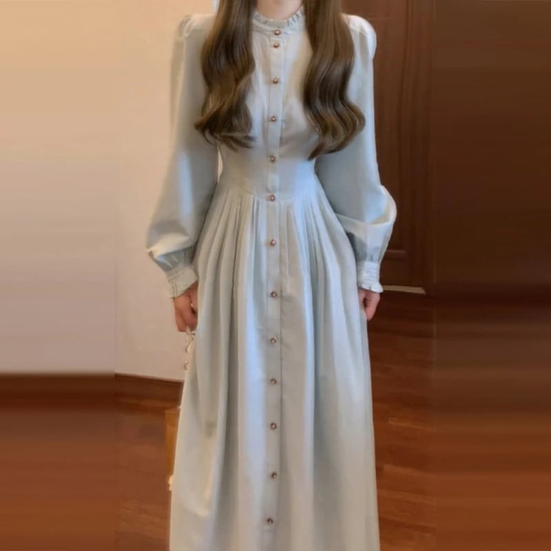 2026 春 ワンピース フレンチ 長袖 シャツワンピース 新作 ロングワンピース レディースファッション
