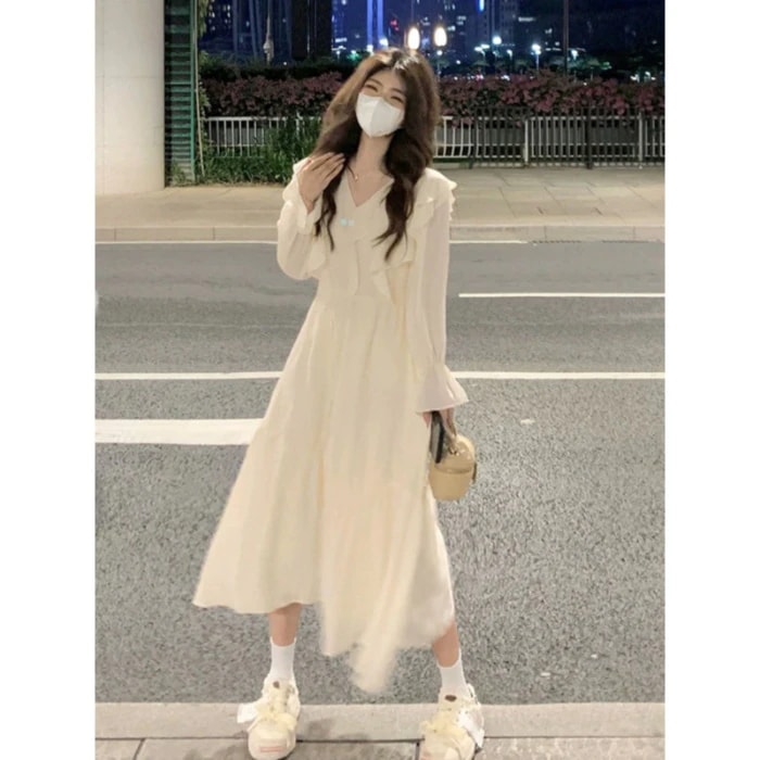 2026 春 ワンピース 新作 長袖 フレンチ デザイン感 フリル 気質 人気 ロングワンピース レディースファッション