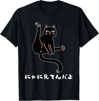 100%コットン(にゃに見てんだよ おもしろ)熱転写3Dプリント メンズ レディース おもしろい 半袖 パロディ Tシャツ