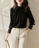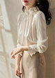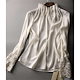 ブラウス レディース 長袖 シャツ 春秋 袖レース 大人 きれいめ お洒落 通勤 フォーマル オフィス ビジネス スーツインナー ショート丈 シンプル とろみ 薄手 エレガント フェミニン カジュアル