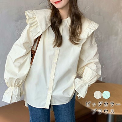 シャツブラウス 長袖ブラウス レディース トップス ビッグ襟 ビッグカラー シャツ フリル ボリュームスリーブ ブラウス おしゃれ 長袖 春 秋 無地 フリル ガーリー かわいい カジュアル お洒落