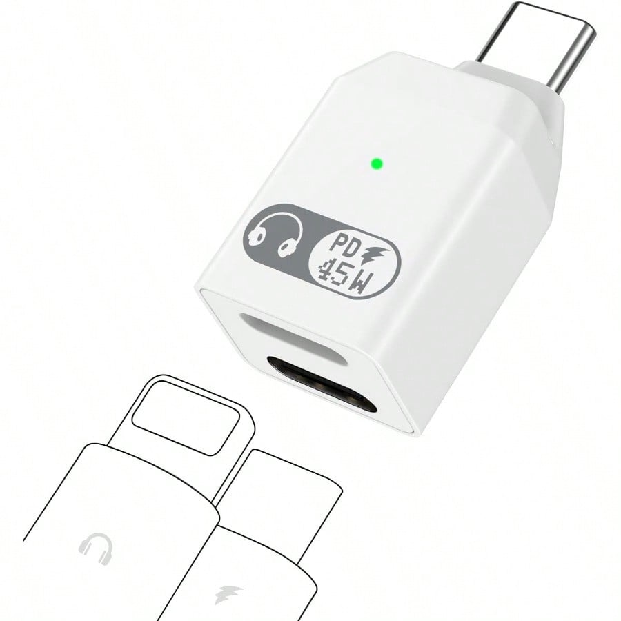 MoKo ライトニングからType-C変換用 イヤホンアダプター 2in1デュアルポート 充電と音楽同時に使える イヤホン変換 通話/音楽/再生対応 Type-CからType-C PD45W充電 あえ
