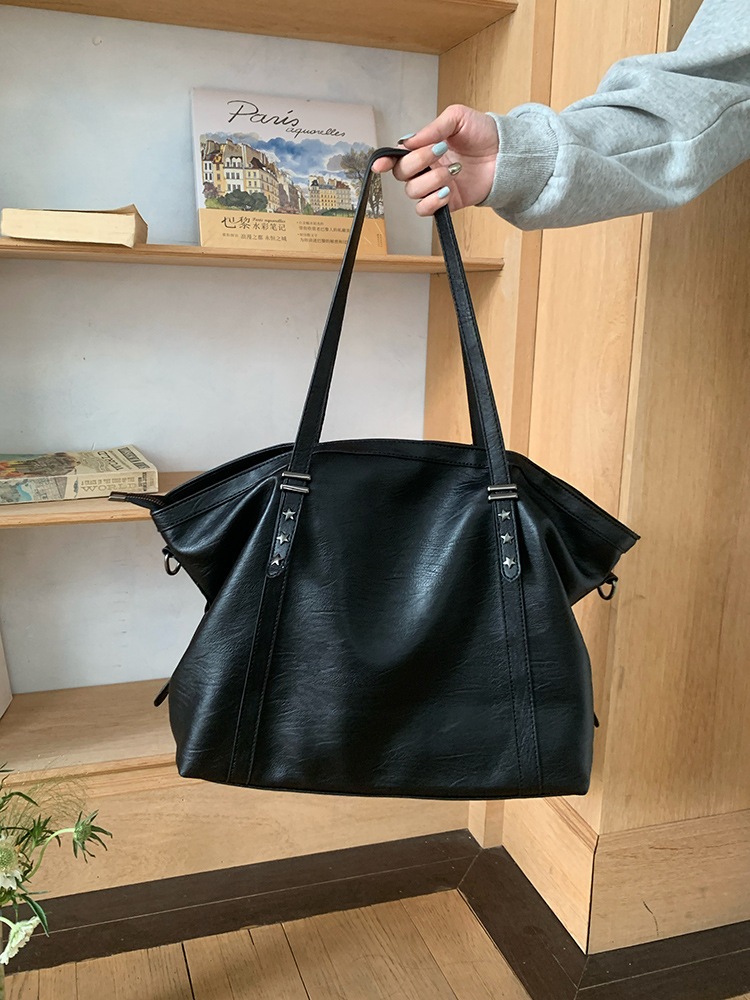 大容量バッグ女性百合学院風シングルショルダーバッグ黒通勤ソフト革トートバッグカジュアル斜め掛けバッグ潮