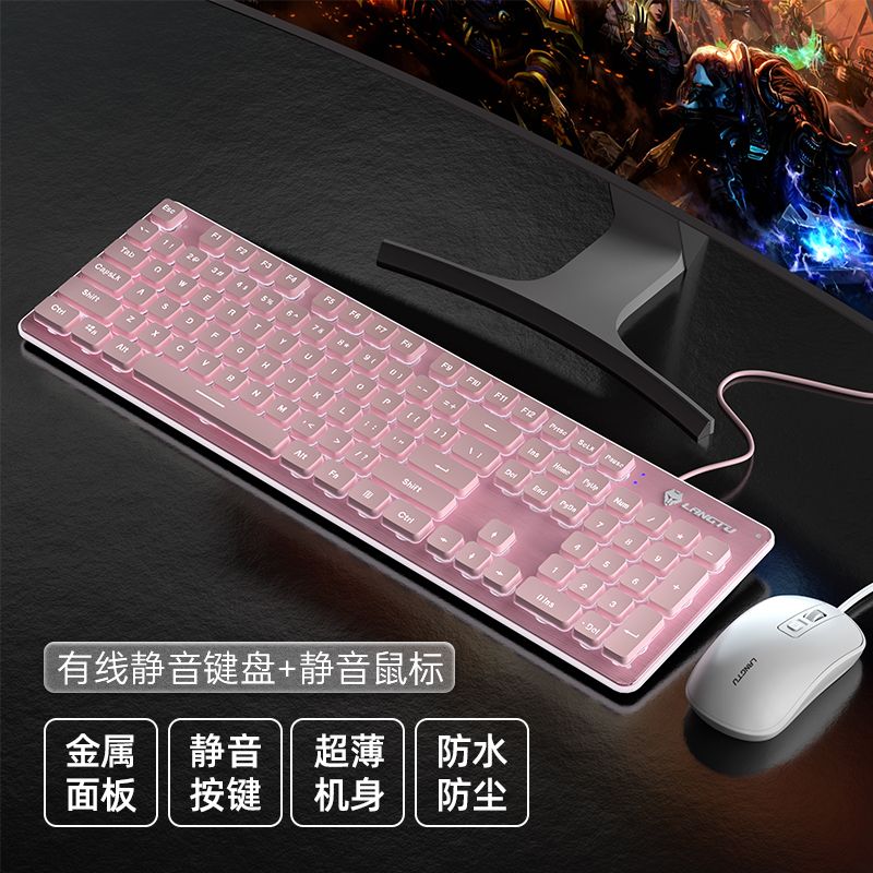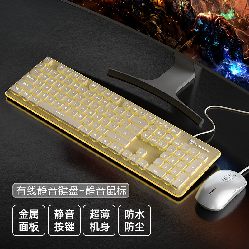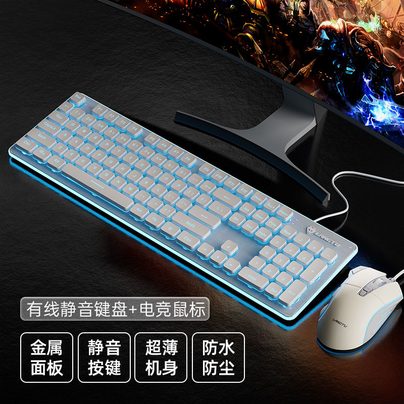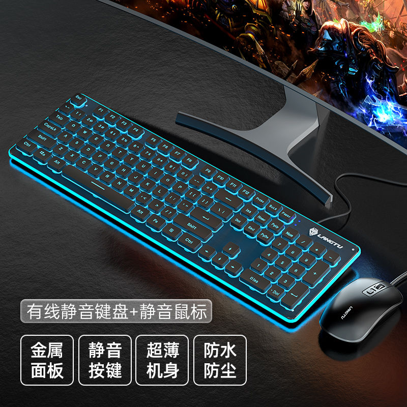 狼途l 1静音キーボードマウスセット有線発光コンピュータオフィス共通2色射出成形色落ちしないキーキャップ