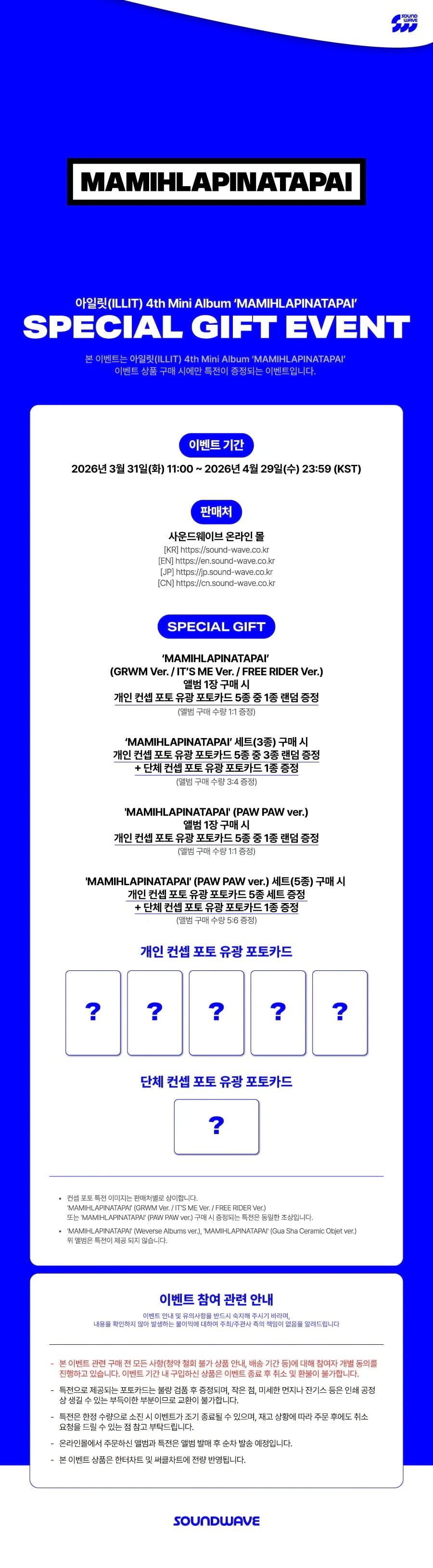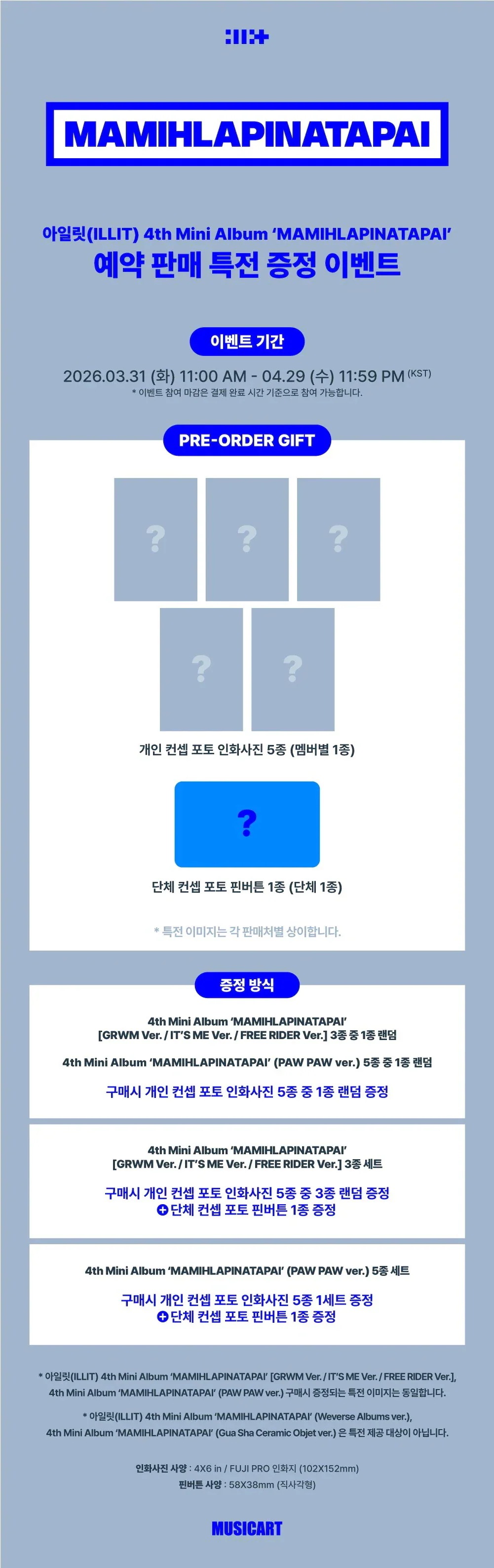 HYBE[5SET][ONLINE PRE ORDER EVENT] ILLIT 4th Mini Album [MAMIHLAPINATAPAI](PAW PAW ver.)