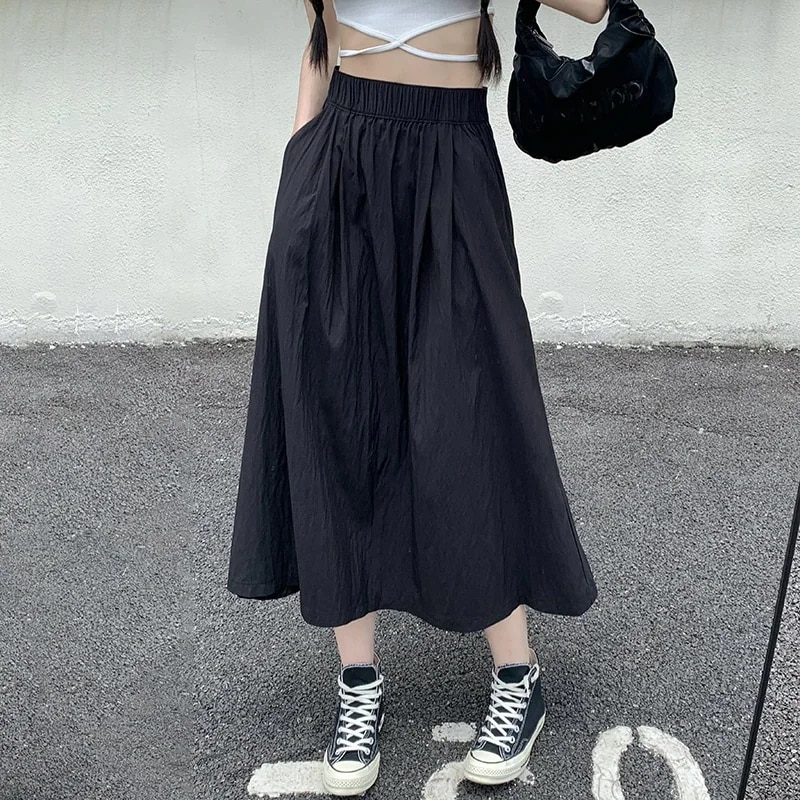 レディース ミディ丈 夏用 レトロ風プリーツスカート 秋用 薄手 プリーツロングスカート ラフな雰囲気 スリム効果 山本風スカート