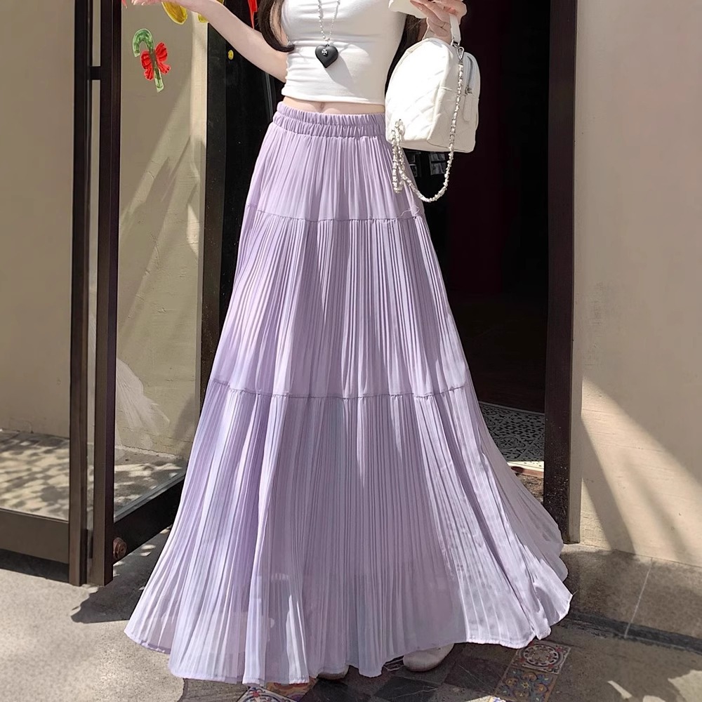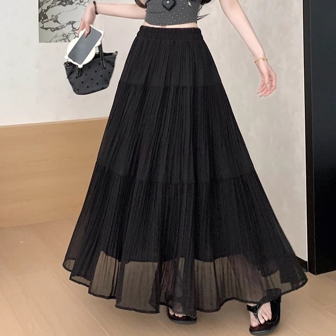 裏地付き 追加春夏プリーツスカート レディース 新作 チュールスカート ロング丈 ワンピースカジュアル 選べる4色