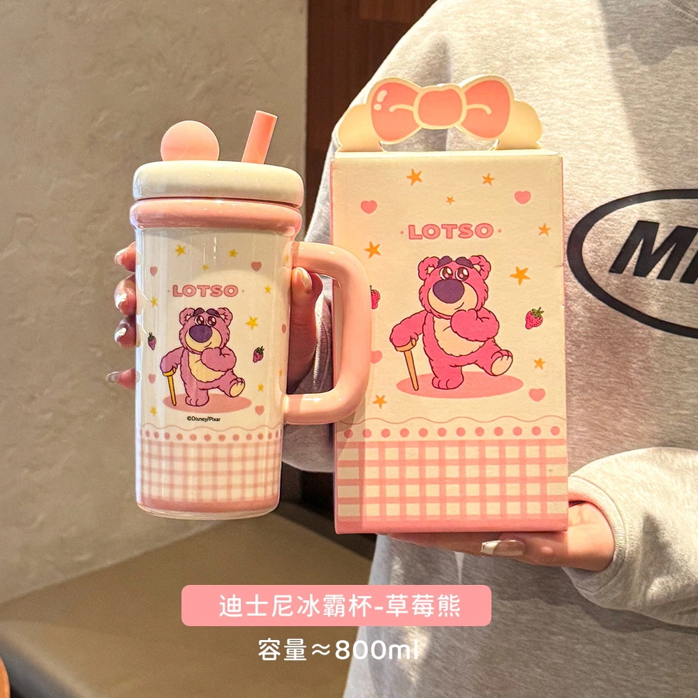 ストロベリーベア ウィニー・ザ・プー 陶器 ストローマグカップ 高見え 大容量 カップル 水コップ プチギフト バースデーギフト アニメ