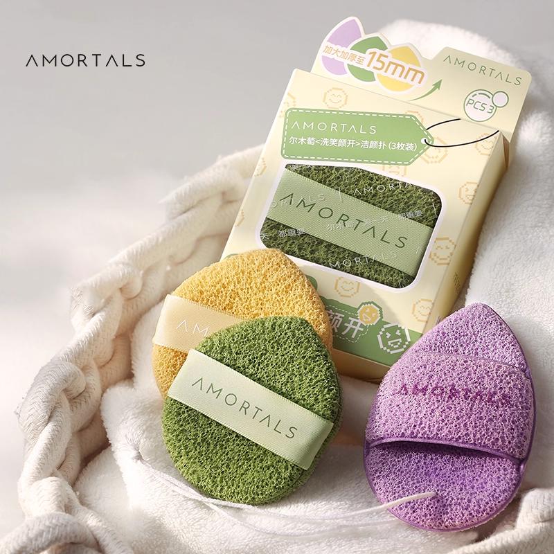 AMORTALS洗顔スポンジ メイク落としパフ 洗顔パフ 3個入り 乾湿兼用 拭き取りメイク道具 泡たち 柔らかい り洗いやす