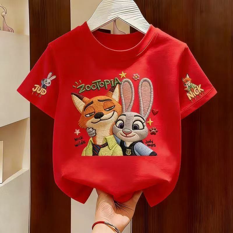 新品 ズートピア ジュディニック 半袖Tシャツ夏 綿トップス キッズ キャラクター 通学着 通園着 女の子 男の子 90-160cm