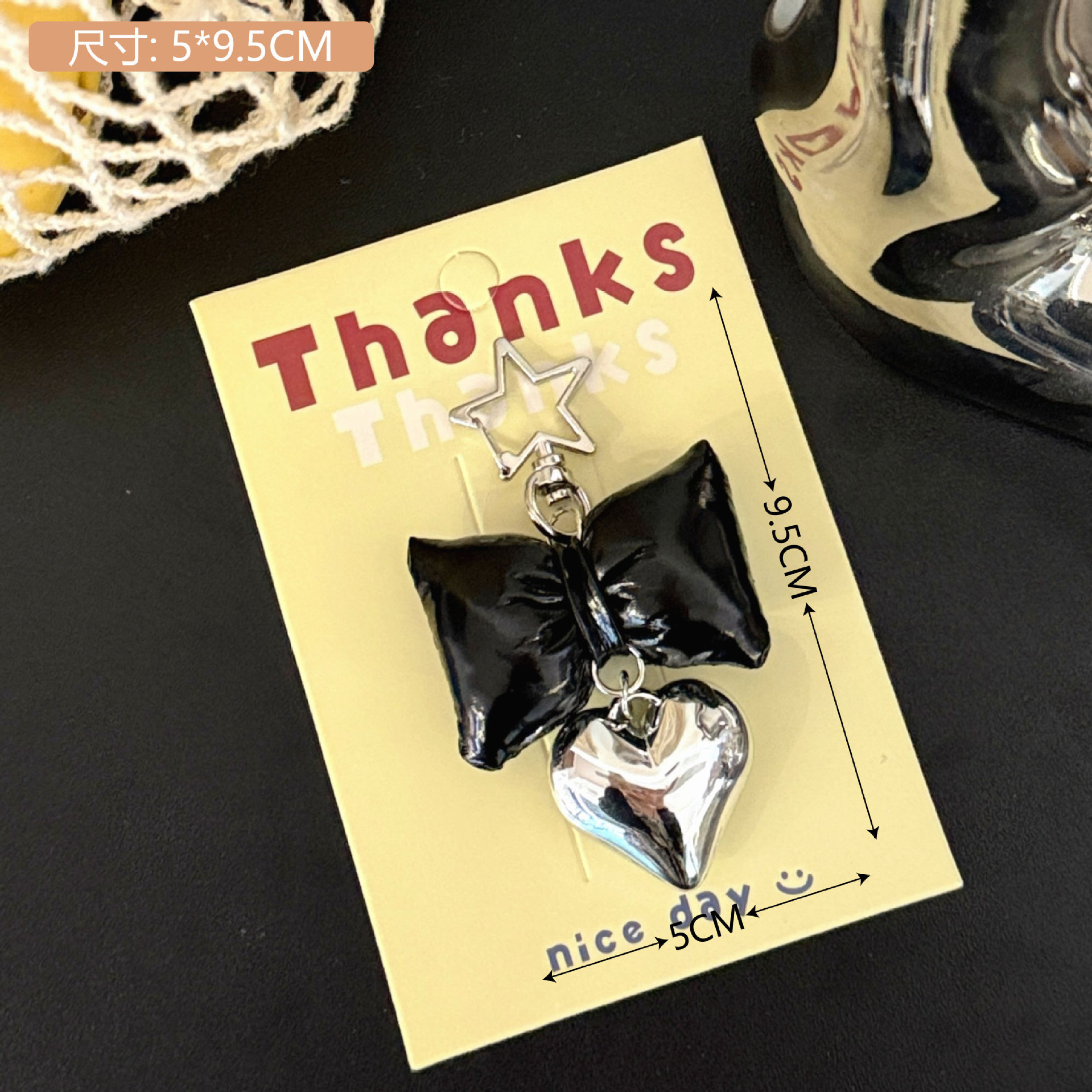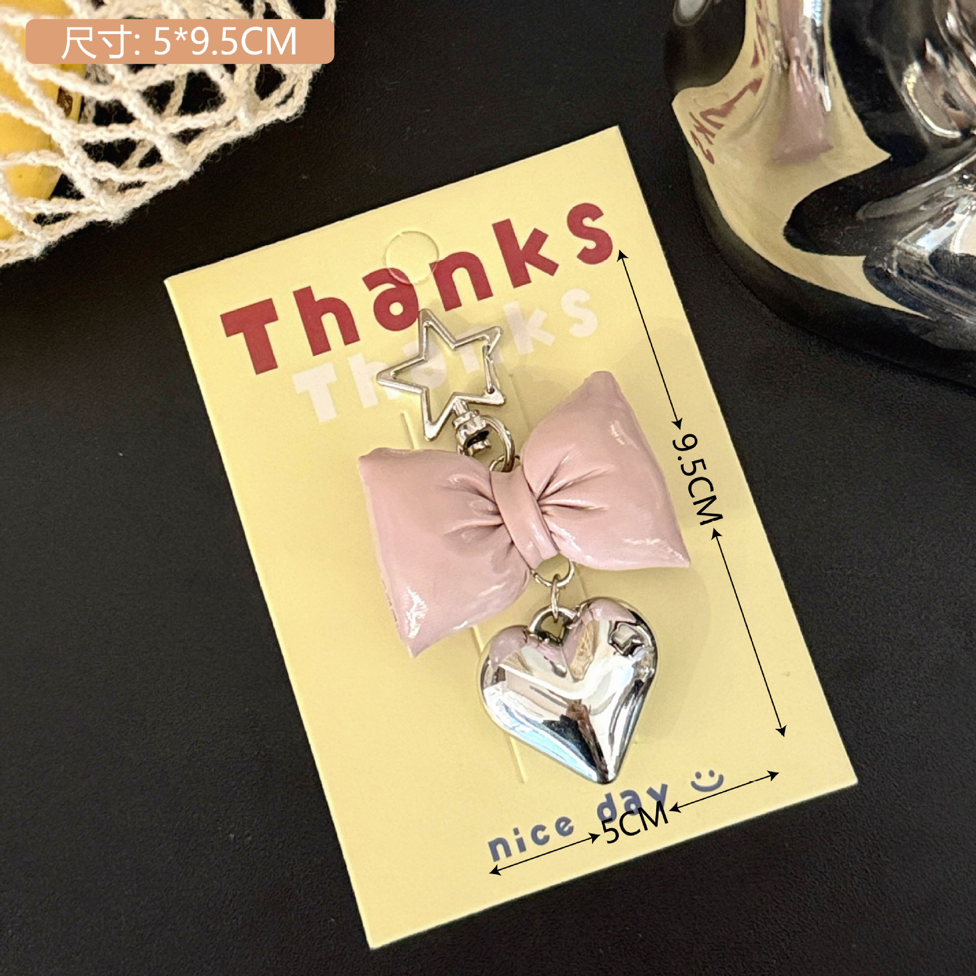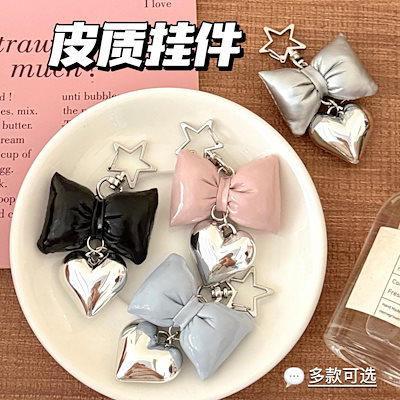 レザーリボンをかたどったハートストラップ少女感バッグキーホルダーペンダント小物