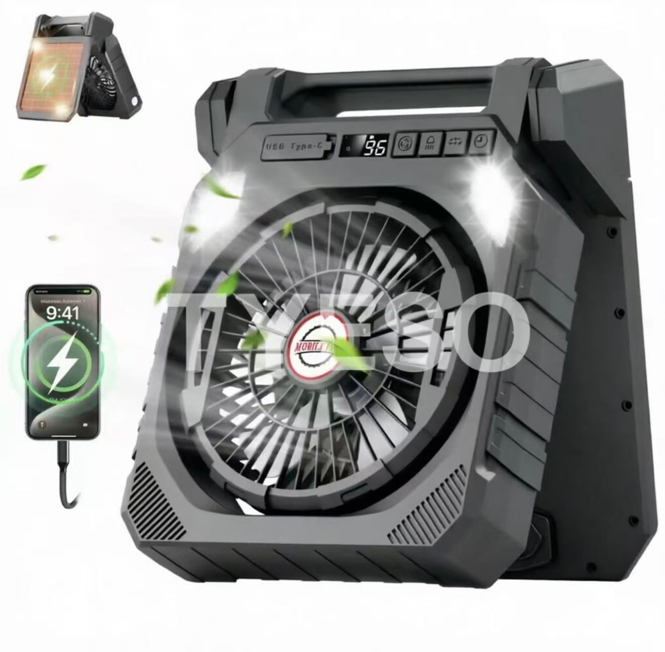 2026最新版 ソーラー扇風機 5600mAh USB+太陽光充電 90自動首振り 4段階風量2枚組ソーラーパネル 長時間稼働大容量 防災グッズ 3段階LEDライト サイド懐中電灯4段階タイマー防水