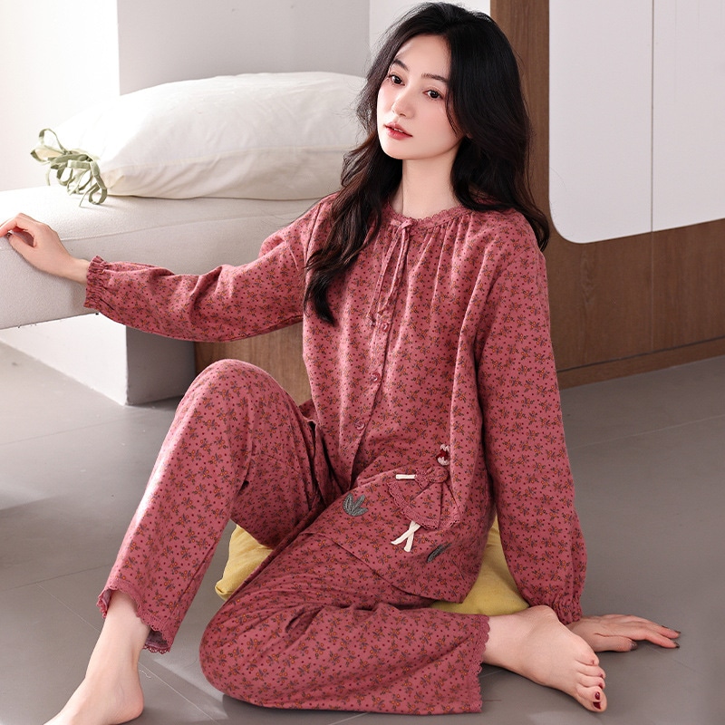 2026 春夏 パジャマ セットアップ 綿 長袖 大きいサイズ 薄手 カジュアル ルームウェア セットアップ 上下セット レディース