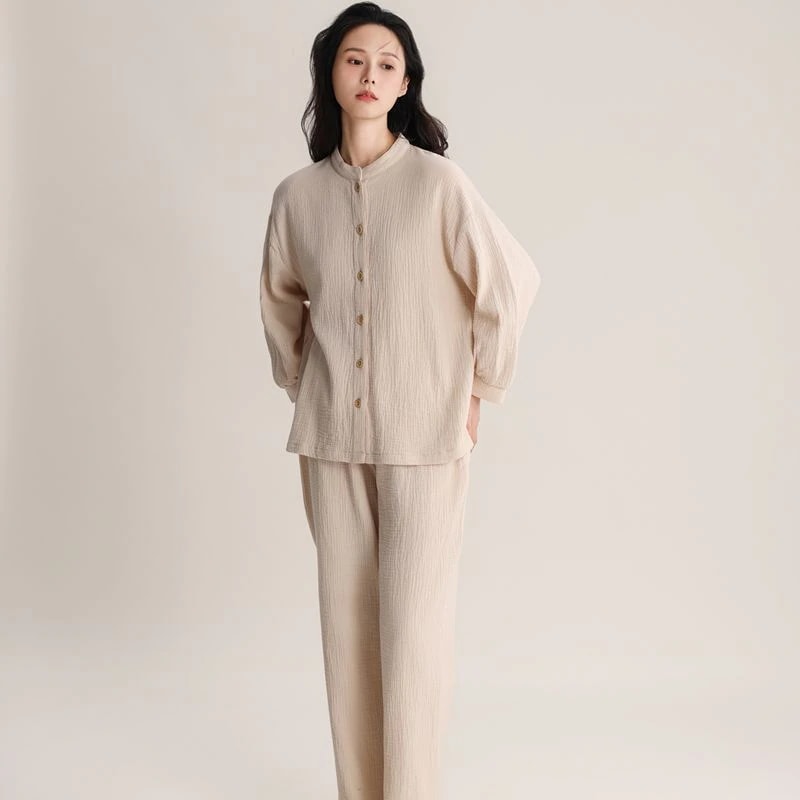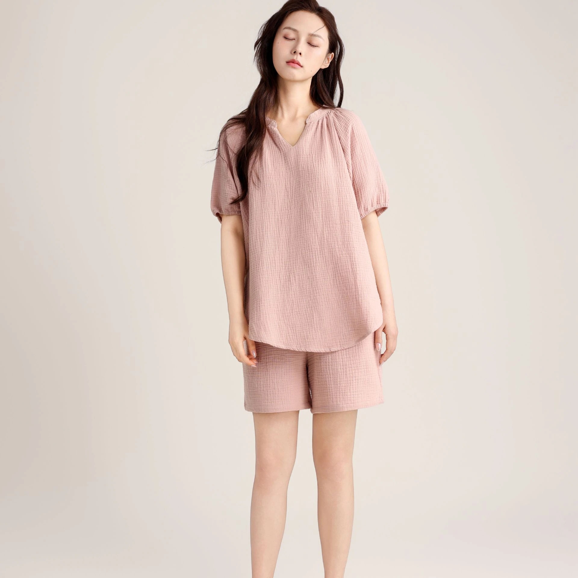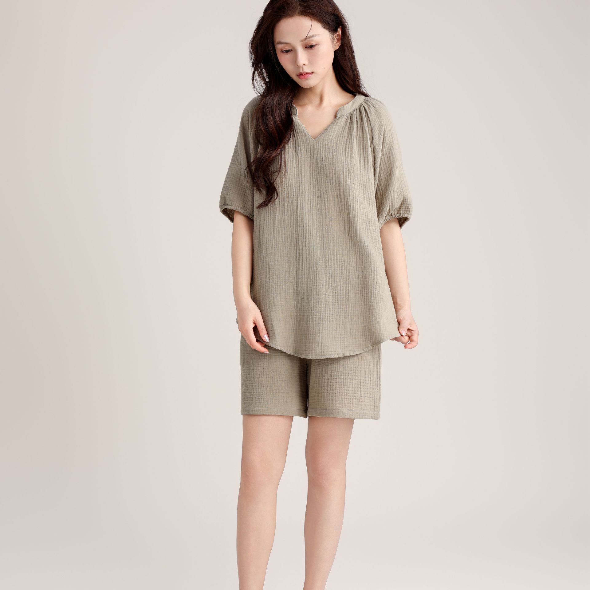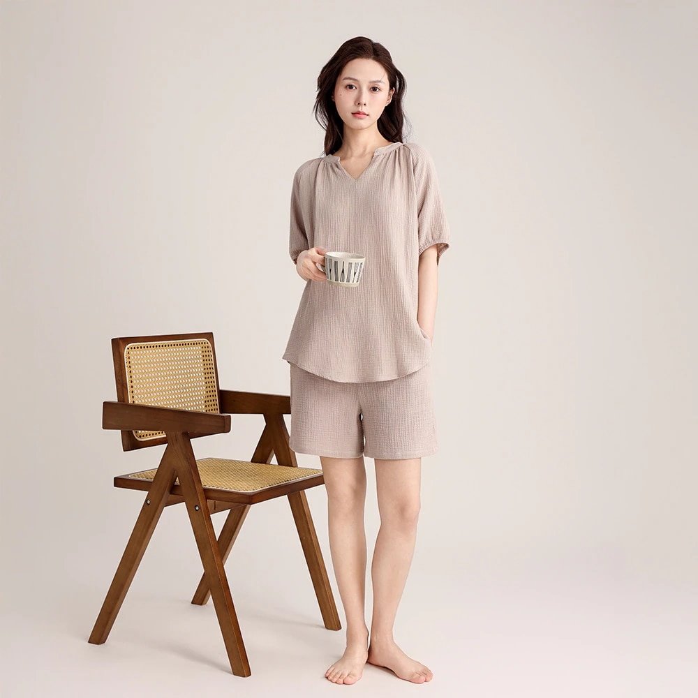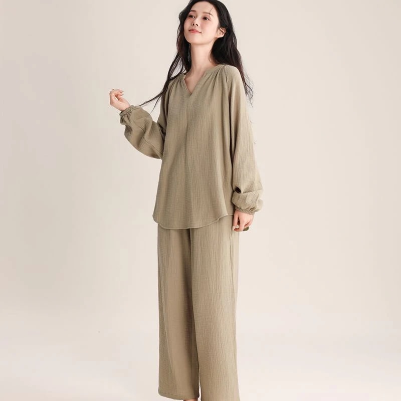 2026 春夏 パジャマ セットアップ vネック トップス 無地 シンプル ゆったり ルームウェア セットアップ 上下セット レディース