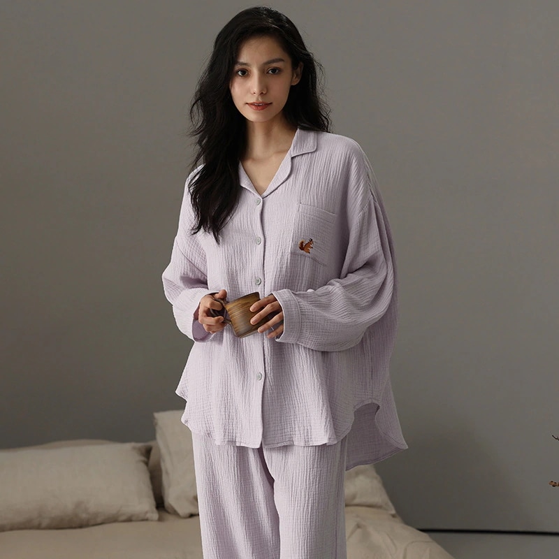2026 春夏 パジャマ セットアップ 綿 パジャマ 長袖 ゆったり カップ付き ルームウェア 上下セット レディース