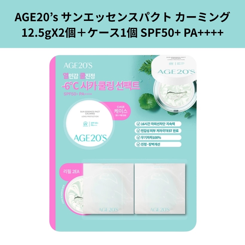 AGE20'Sサンエッセンスパクト カーミング 12.5gX2個+ケース1個 SPF50+ PA++++ / クーリングUV / シカ / 敏感肌/日焼け止めクッション