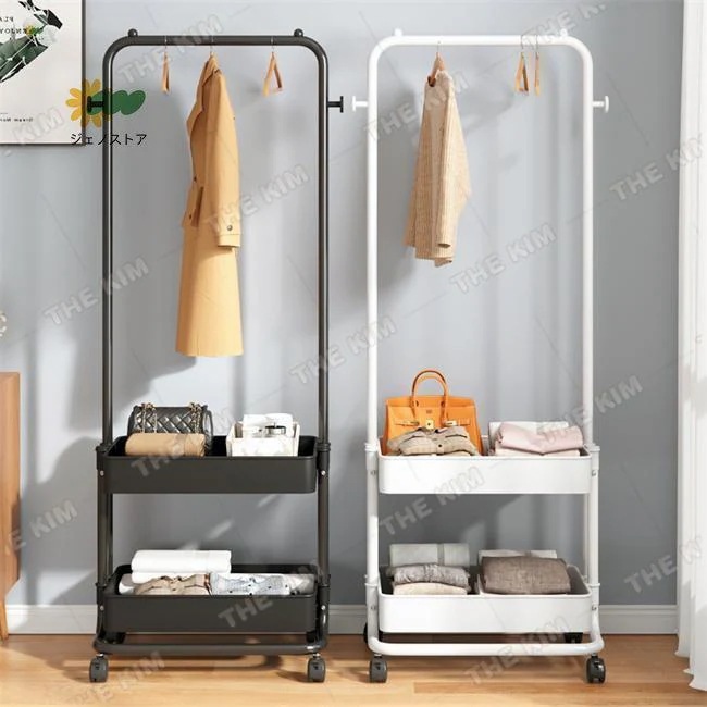 新入庫ハンガーラック おしゃれ 棚付き キャスター付き トローリーハンガー バスケット コートハンガー バスケット付き カゴ 子供 玄関 収納 多機能 大容量 収納ラック
