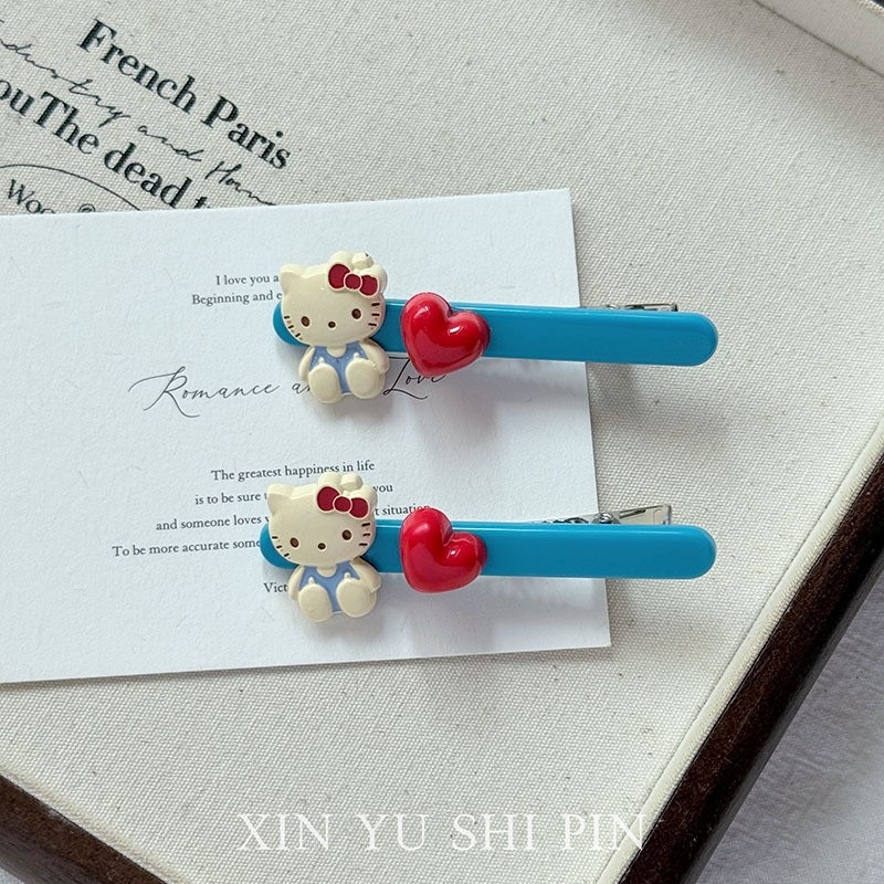 キティちゃん ヘアクリップ 女の子 リボン ビジュー 前髪 サイドクリップ 可愛い 髪飾り 高級感
