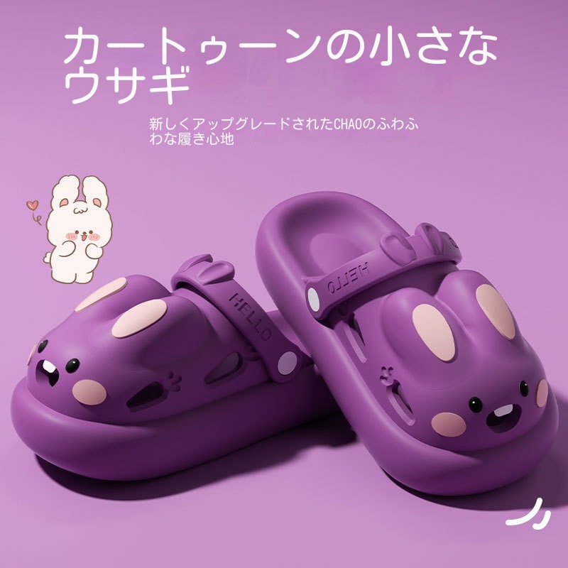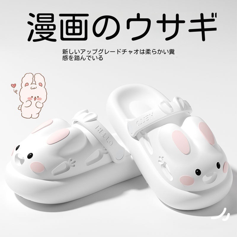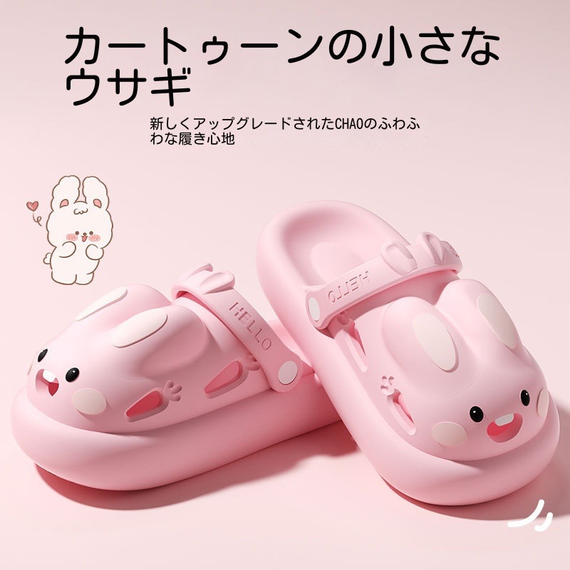 【夏新作】かわいいうさぎモチーフルームサンダル 子供 大人用 軽量通気 クロッグサンダル 滑り止め 柔らかクッション 屋内外兼用 旅行 ビーチ プレゼント向け