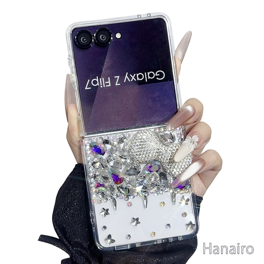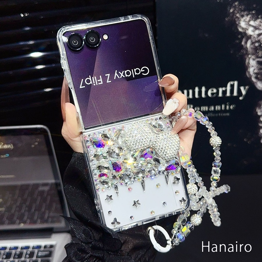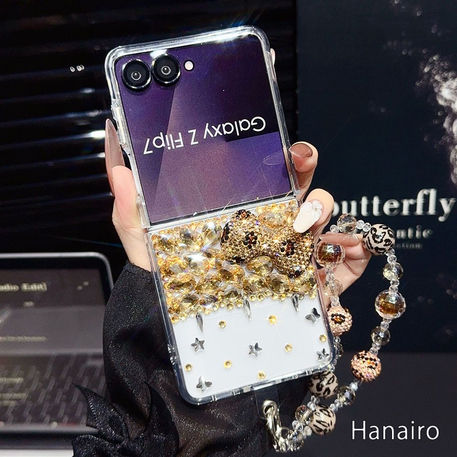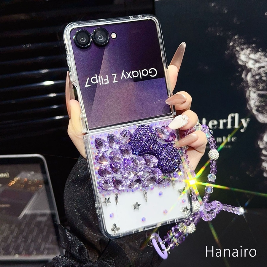 Galaxy韓国人気 ハンドメイド galaxy z flip7 ケース キラキラ ラインストーン flip6/5/4/3 ケース おしゃれ ストラップ付きスマホケース
