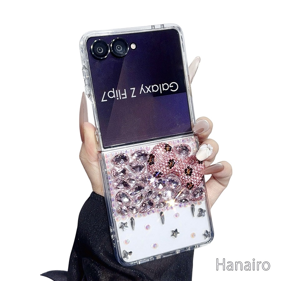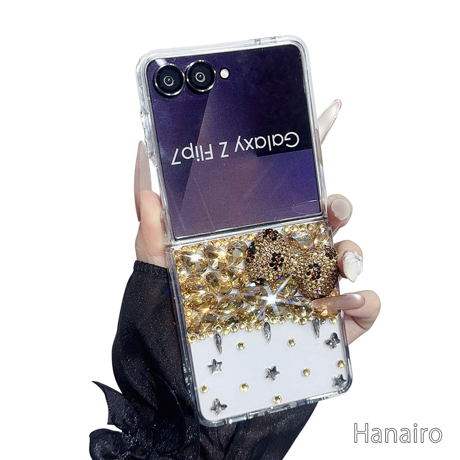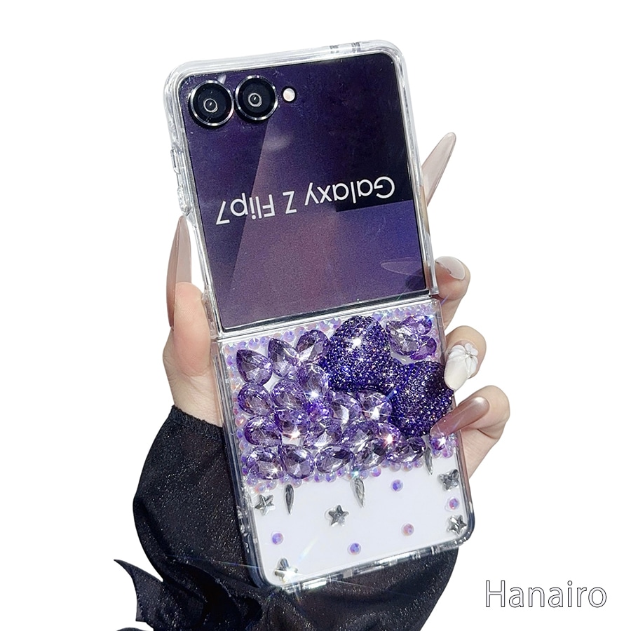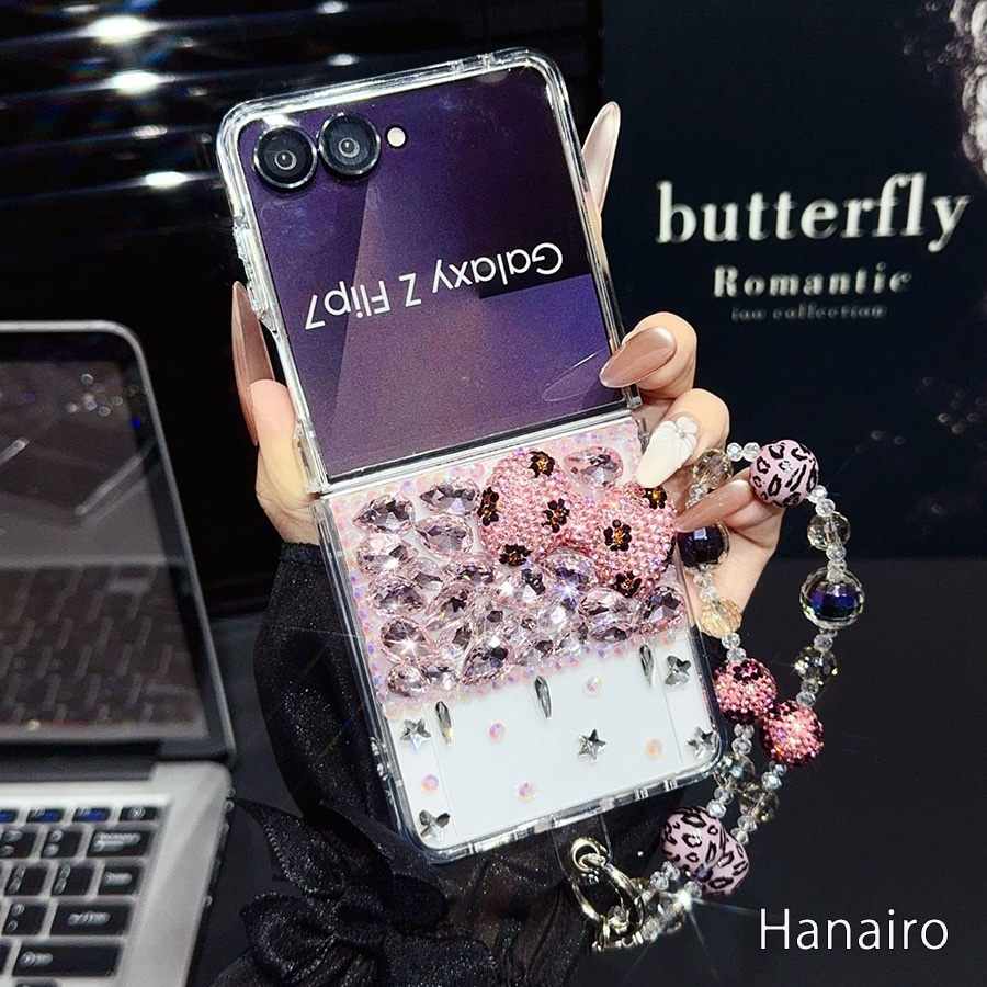 Galaxy韓国人気 ハンドメイド galaxy z flip7 ケース キラキラ ラインストーン flip6/5/4/3 ケース おしゃれ ストラップ付きスマホケース