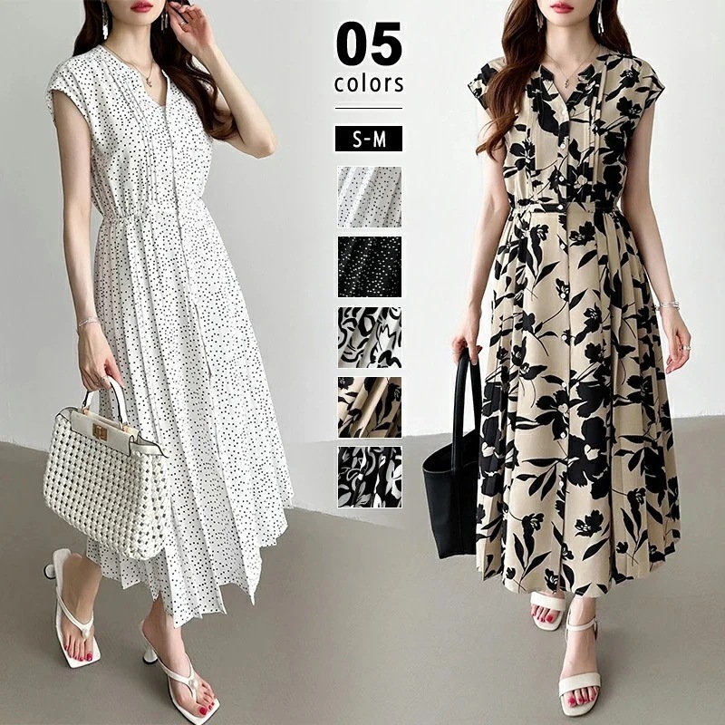 フレンチスリーブワンピース 夏ワンピース 総柄ワンピース ワンピース フレンチスリーブ 夏 レディース 花柄 ドット 花柄ワンピース ドットワンピース ロング