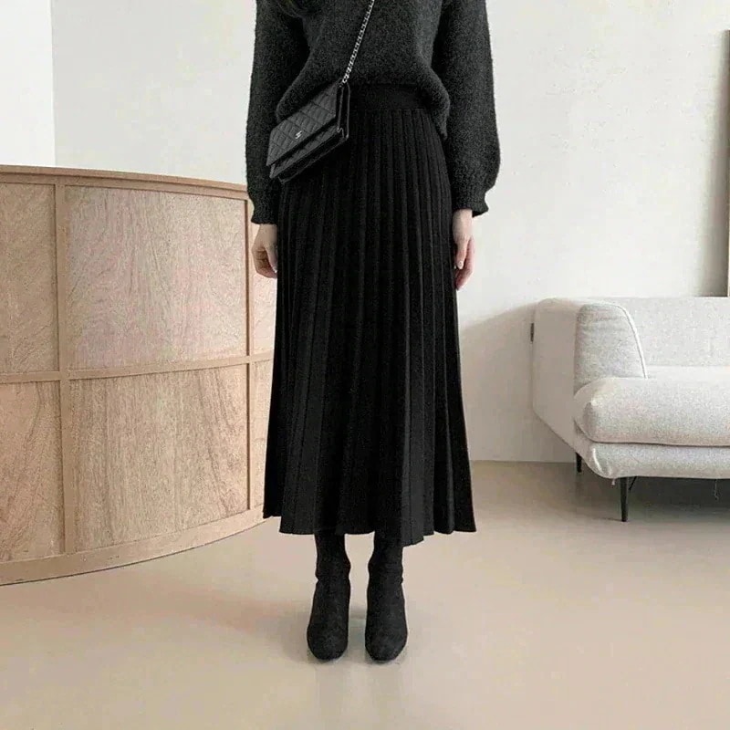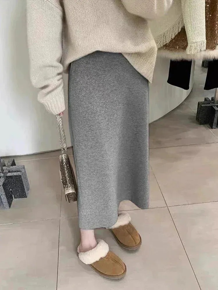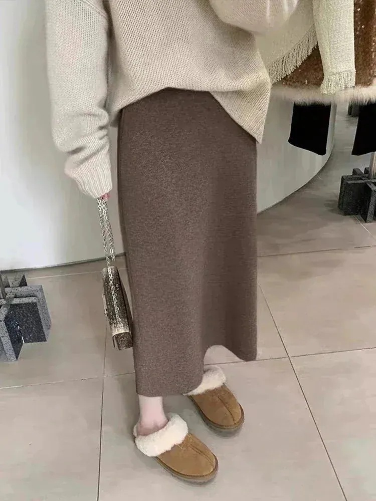 高品質ニットロングスカート 2タイプ 極暖 冬厚手 Aライン美脚ニットスカート フレアスカート百掛けロングスカート スリミング着痩せタイトスカート高い弾体型をカバープリーツスカ