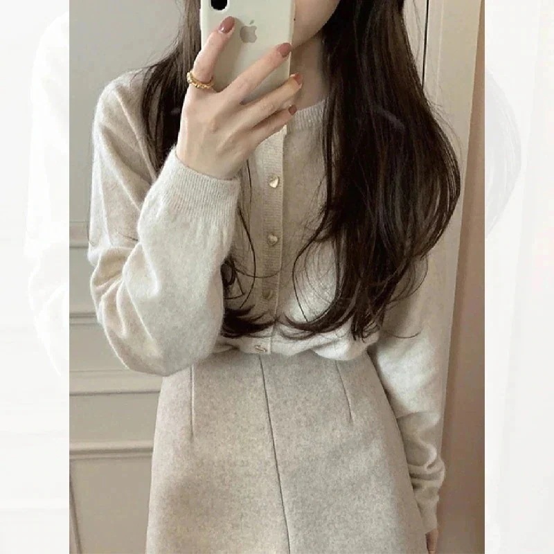 5カラー選べる新春ニットダブルジップ カーディガントップス 可愛いスカートアウター カーディガン ニットセーター レディース秋冬 長袖 ラウンドネック ニット カーディガン