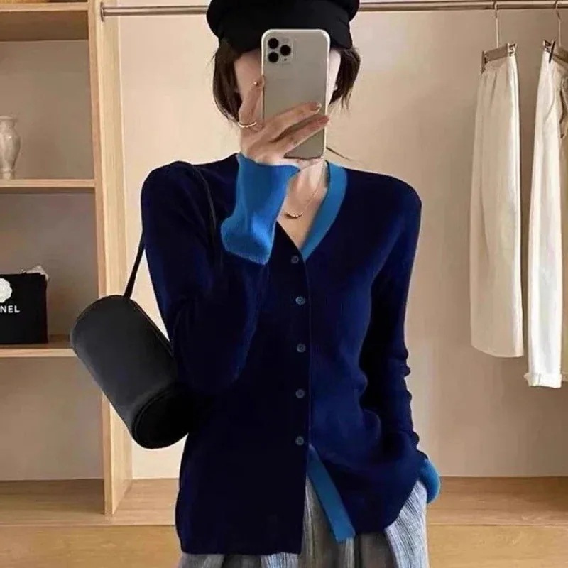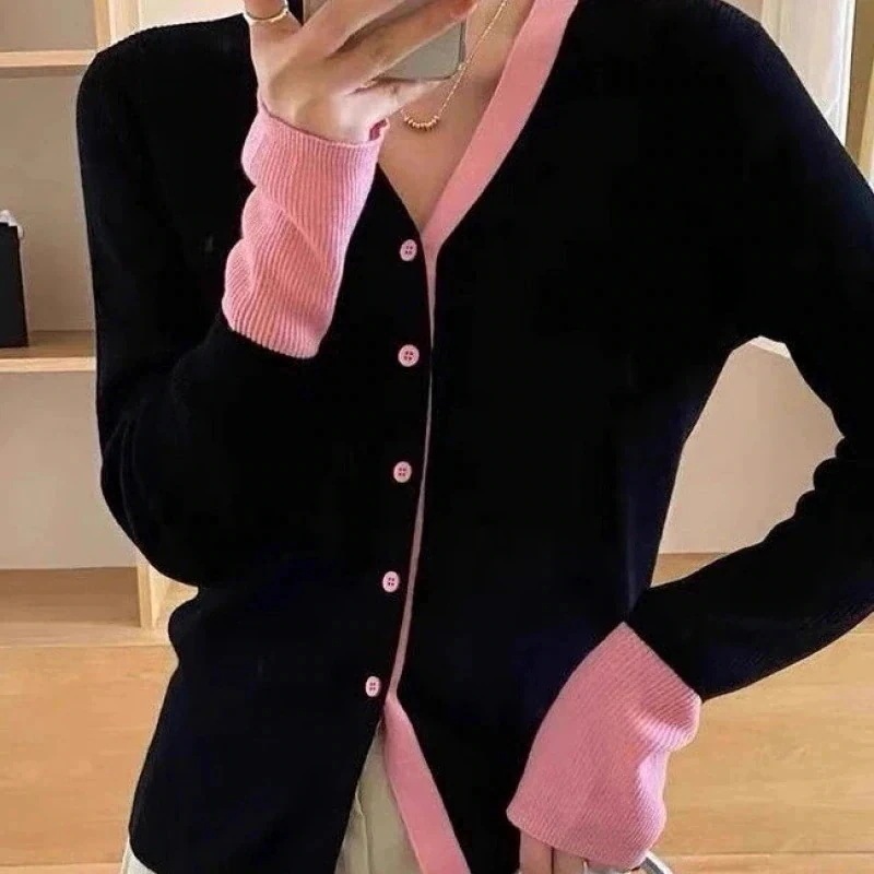 カーディガンジャンパー女性Vネックシングルブレストニットセータージャケットスリムで薄い24新作