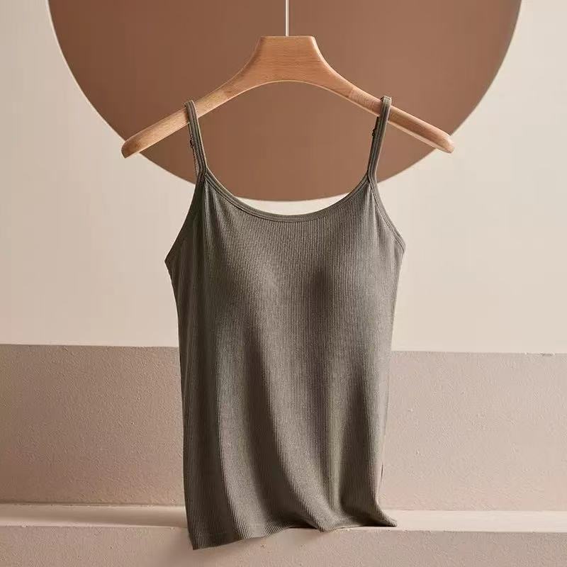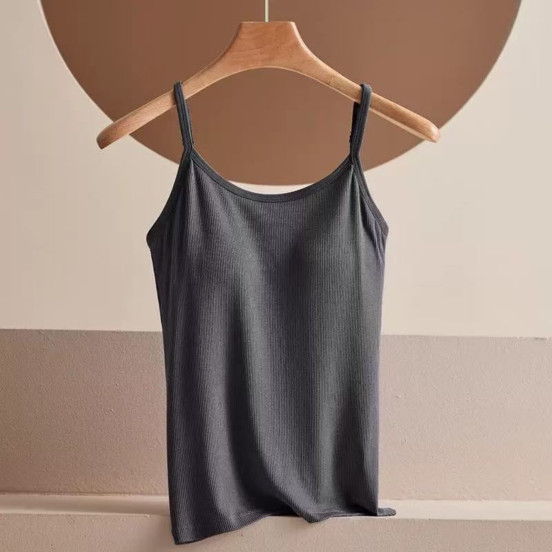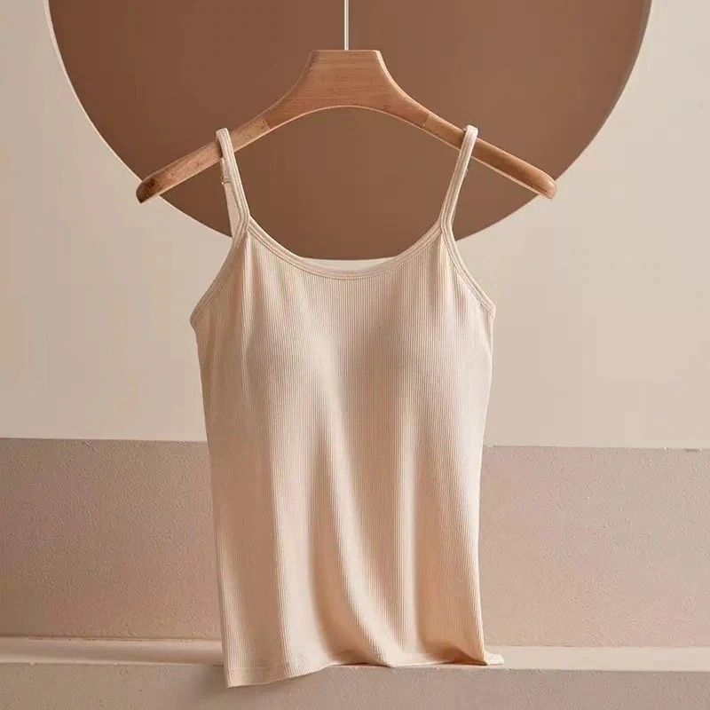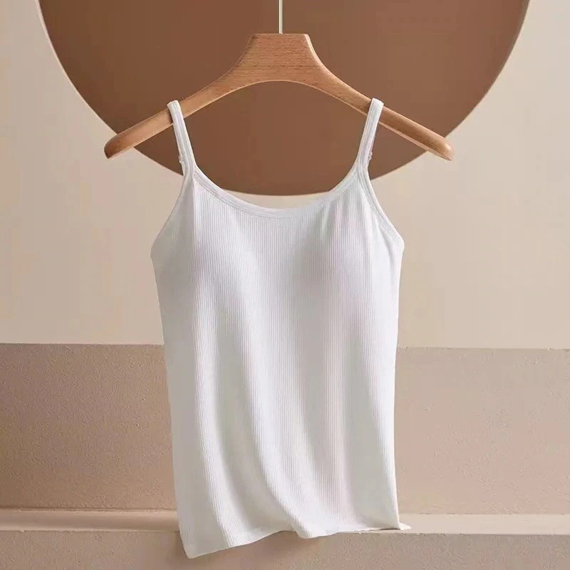 調整可能キャミソール インナー女性内蔵パッド一体型リブ編み大サイズインナーウェア美背トップス外着用