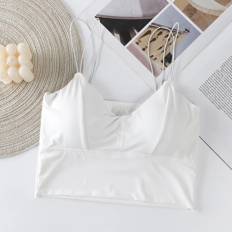 アイスシルク無痕美背ストラップレスキャミソール ワイヤーなしパッド付きスポーツブラジャー女性用ストラップタンクトップ