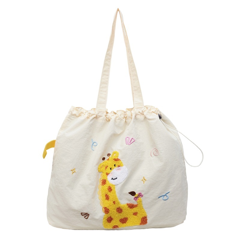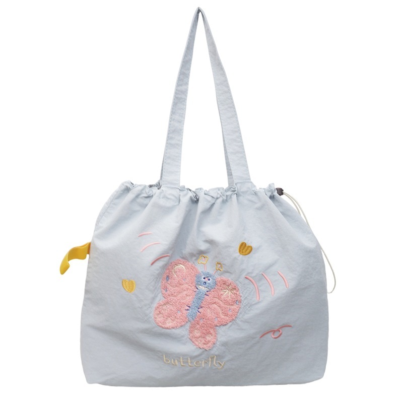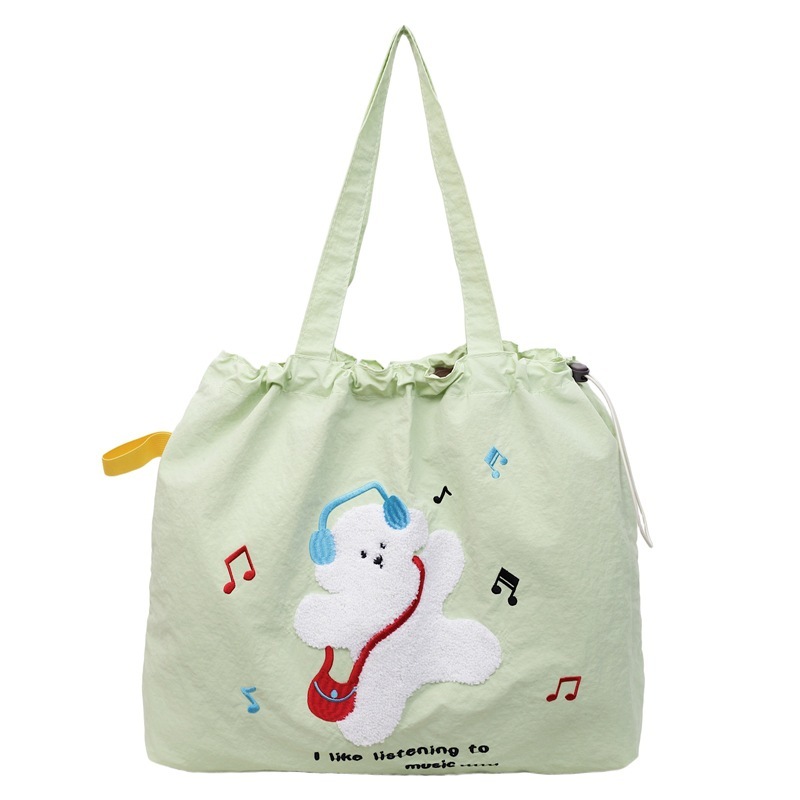 カートゥーン 大容量 ショルダー バッグ レディース ドローコード キャンディカラー ショルダー 可愛い タオル 刺繍 トートバッグ