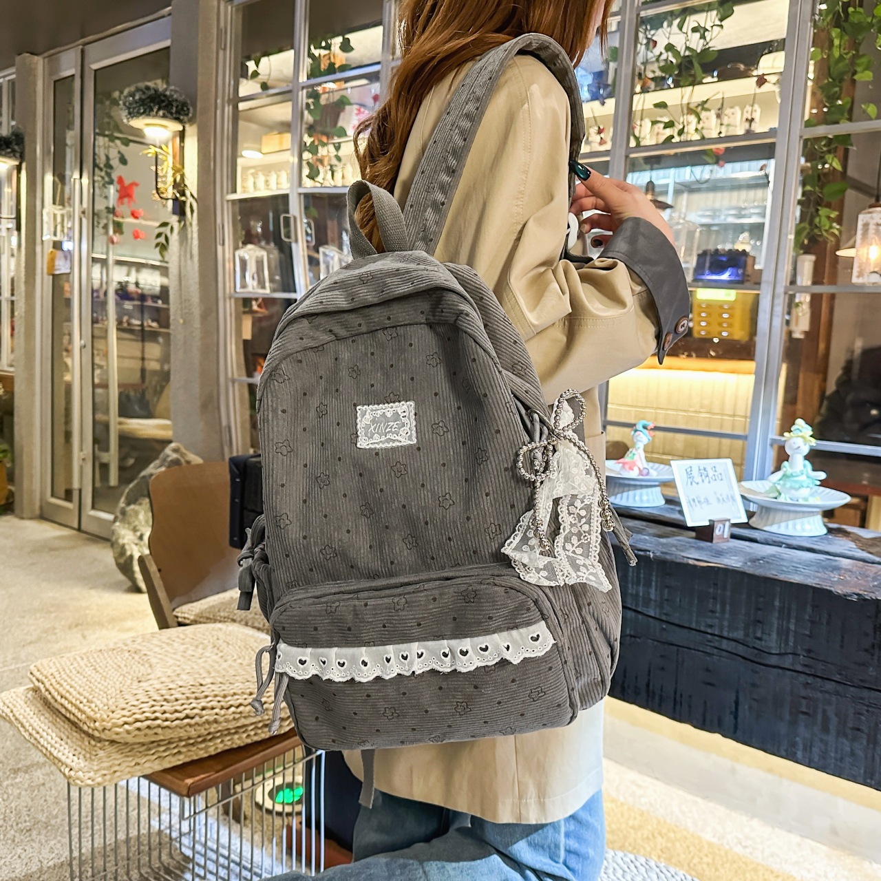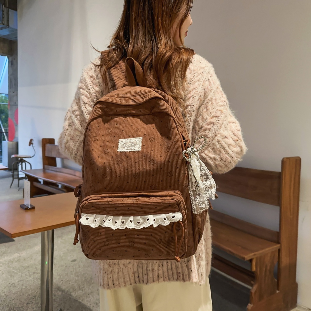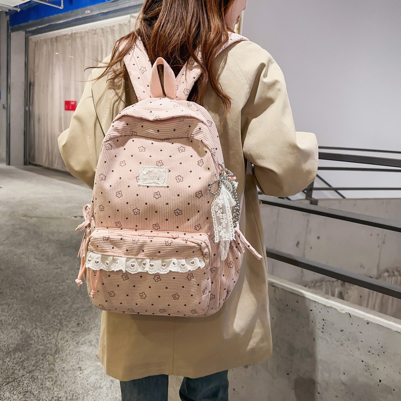 キャンパス コーデュロイ リュック レディース 韓国系 SNS映え シンプル カジュアル 学生 スクールバッグ 可愛い 少女 軽量 ミニリュック