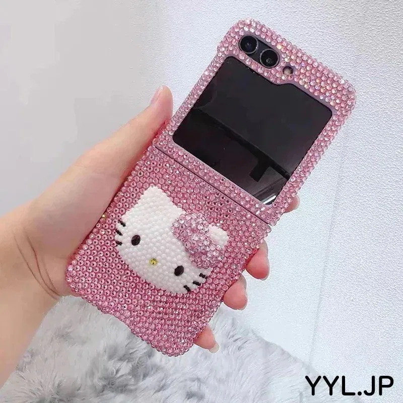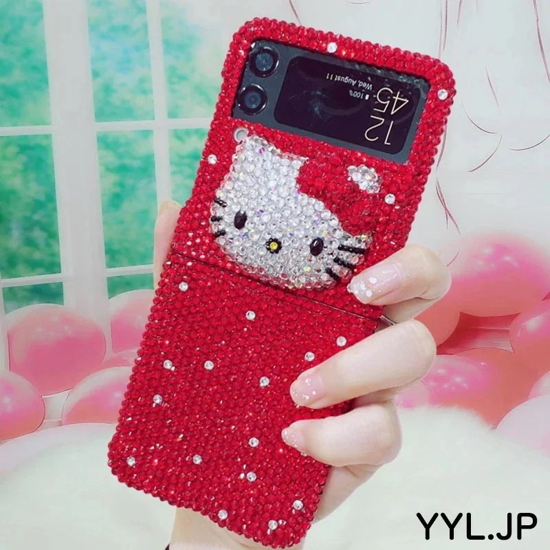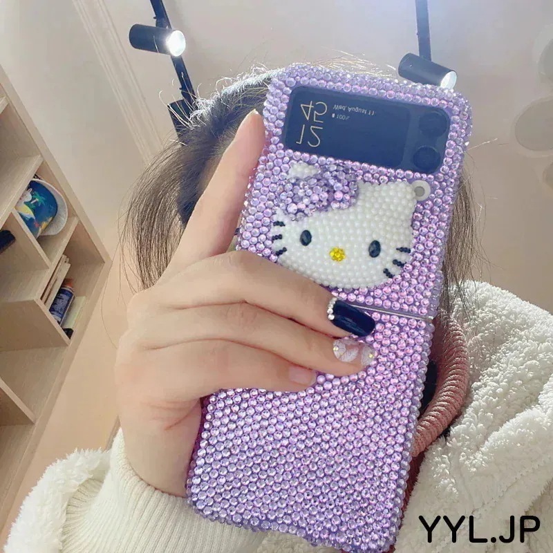 Galaxy手作り キティちゃん galaxy z flip7 ケース ハローキティ 韓国 ラインストーン キラキラ galaxy z flip6 ケース キティ flip5 flip4 flip3 かわいい