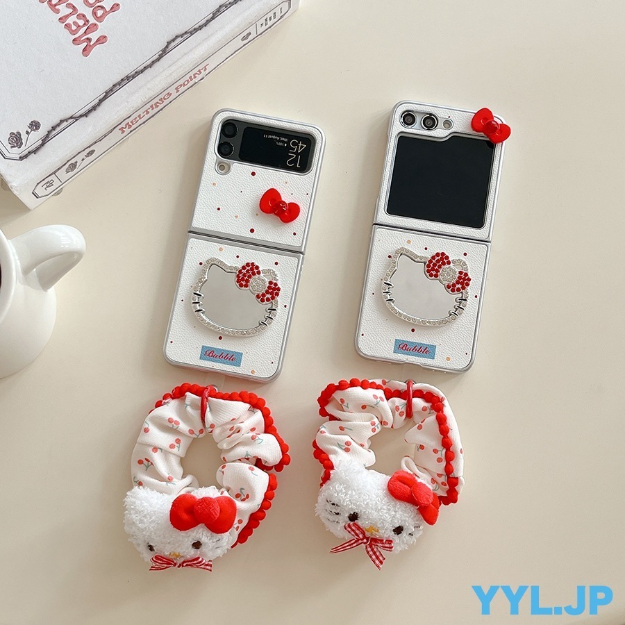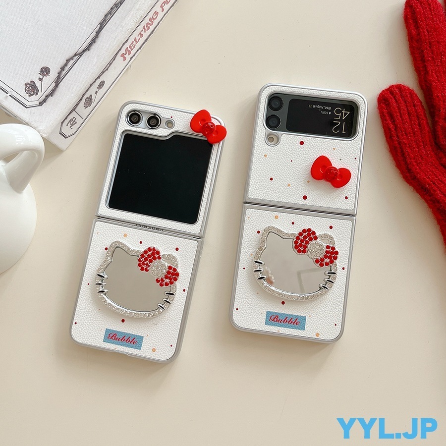 Galaxy化粧鏡付き galaxy z flip6ケース キティちゃん galaxy z flip5 ケース ハローキティ 落下防止 galaxy z flip4 ケース flip3 韓国 かわいい