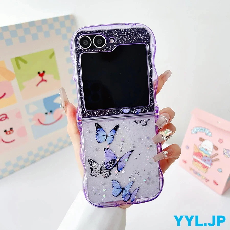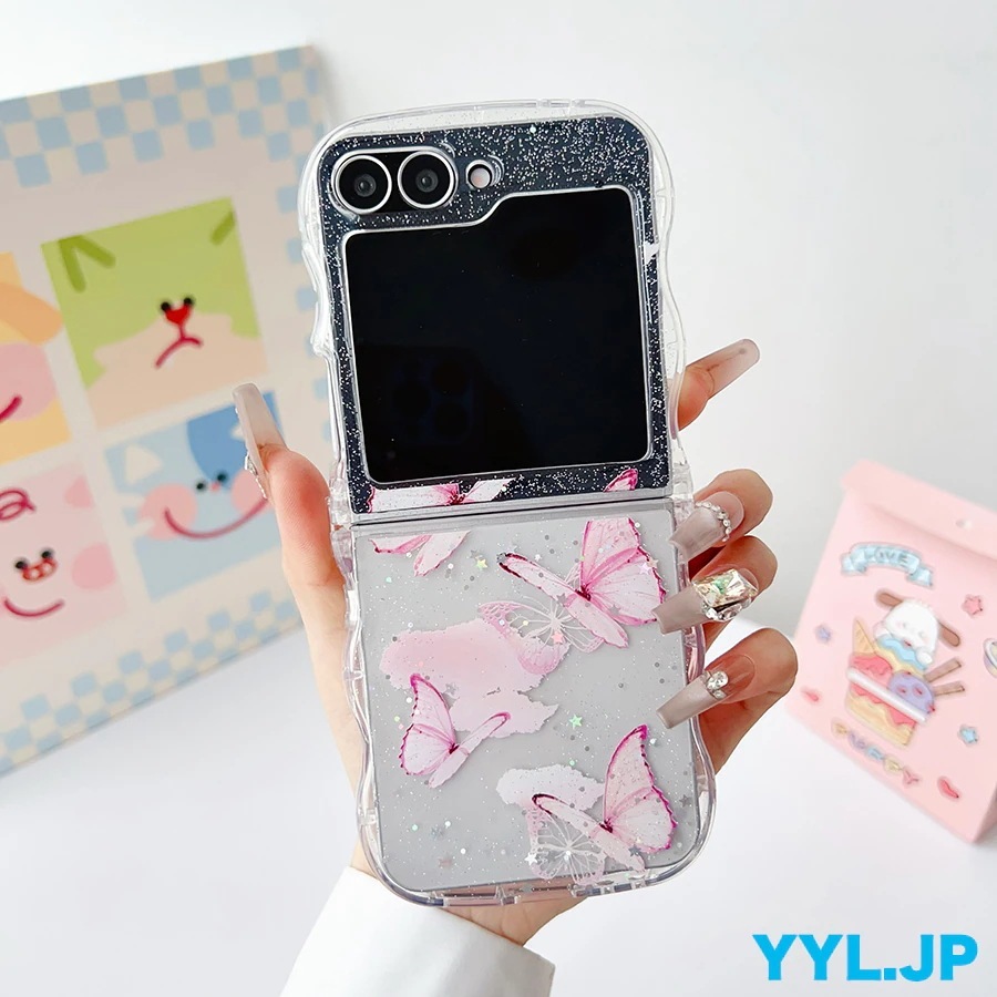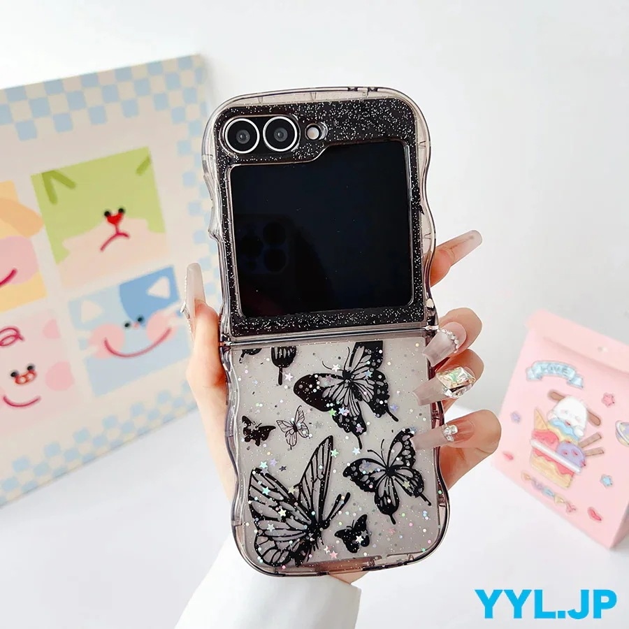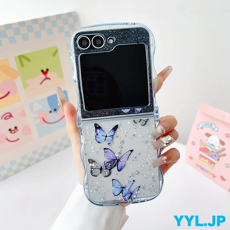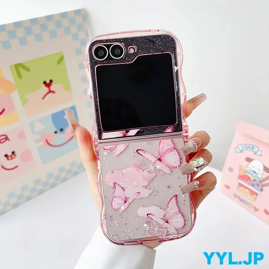 Galaxyハンドメイドレジン 蝶 galaxy z flip7ケース 韓国 クリア galaxy z flip6 ケース かわいい 透明 一体型ケース flip5 flip4 flip3 ケース
