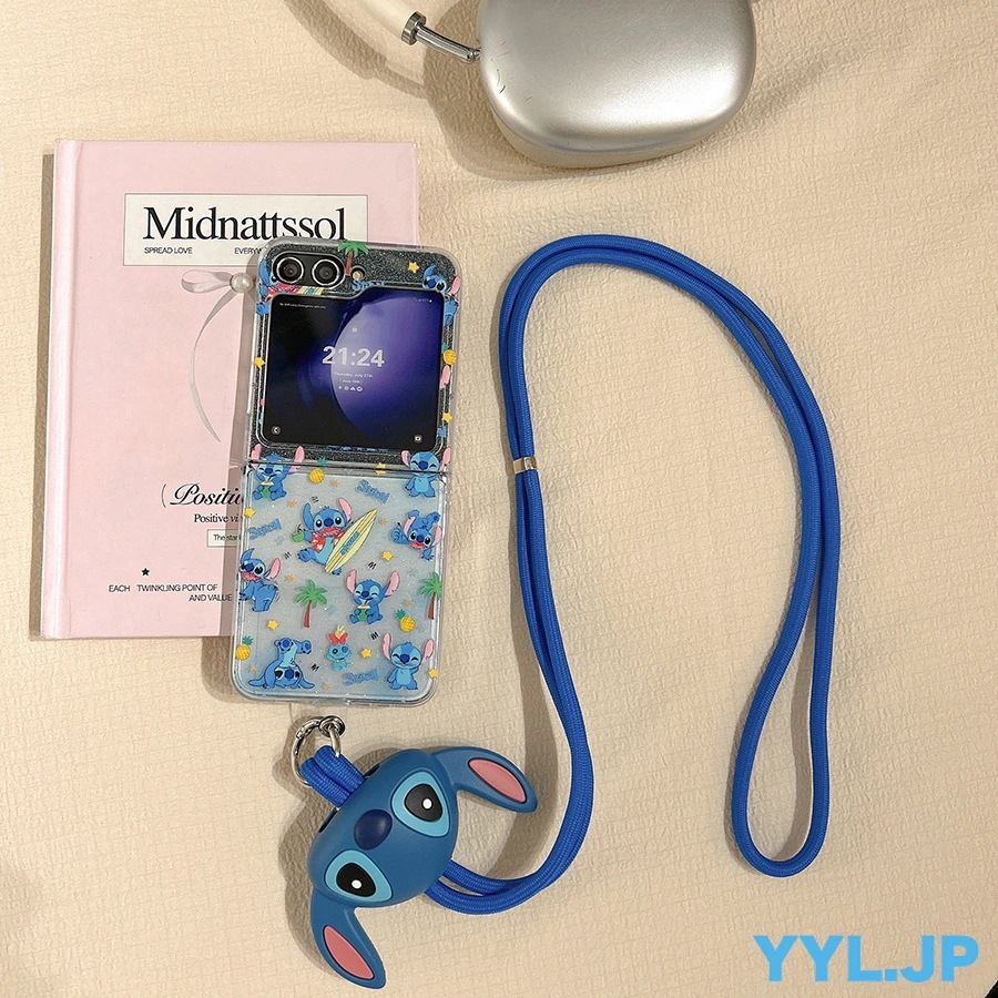 Galaxyキラキラ スティッチ galaxy z flip7 ケース ショルダー キャラクター galaxy z flip6 ケース かわいい flip5ケース