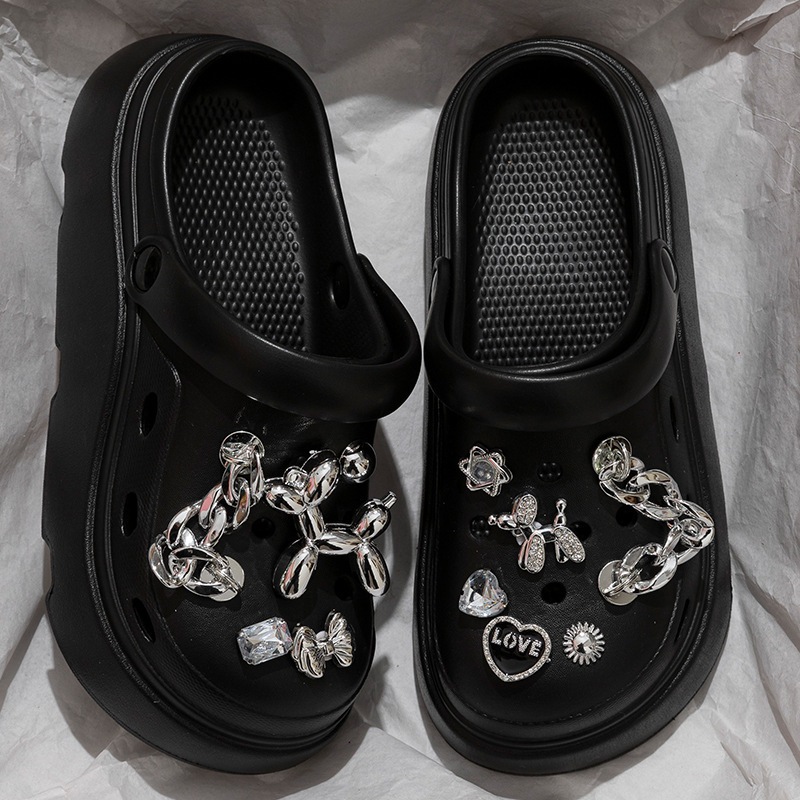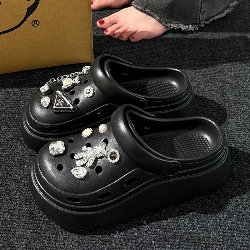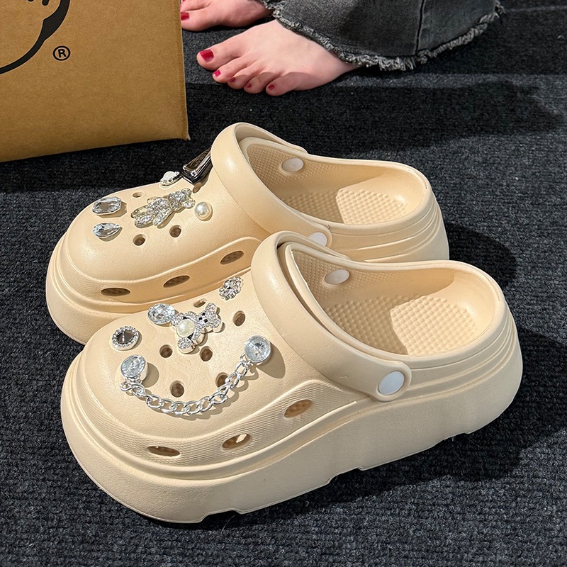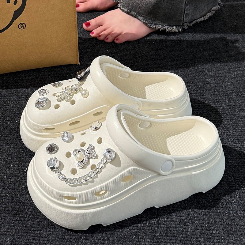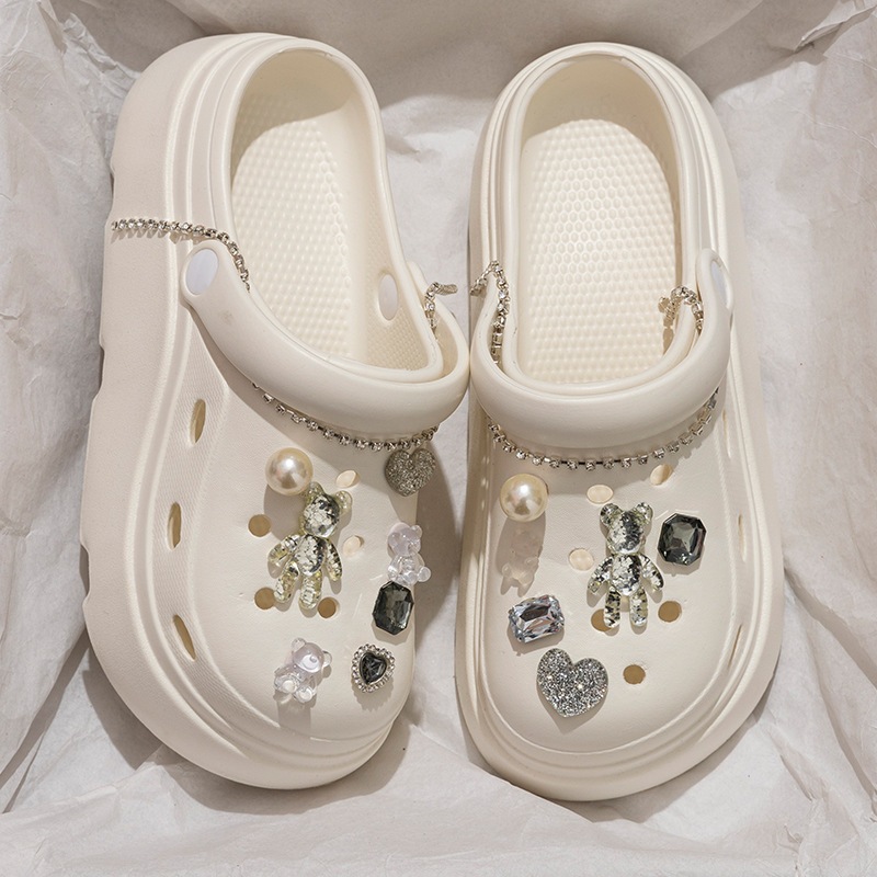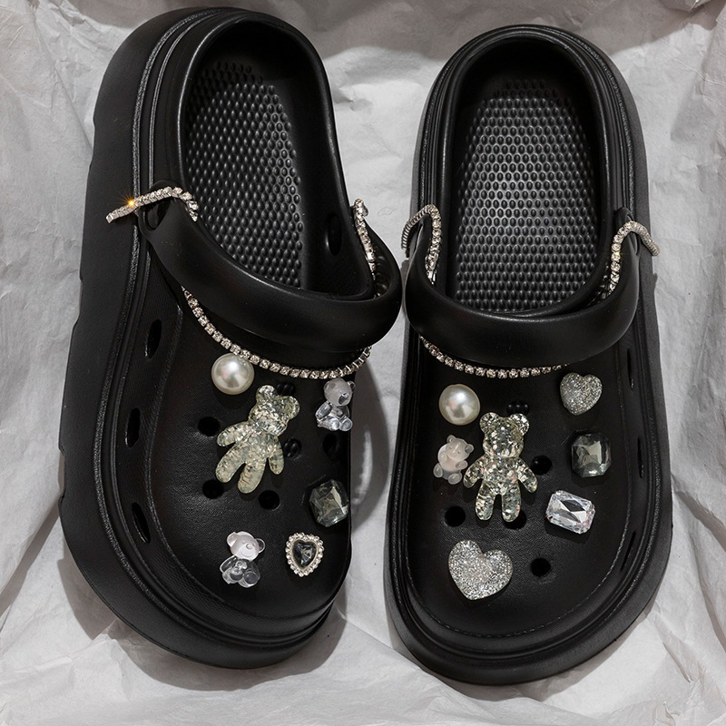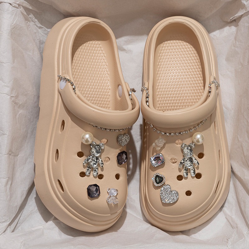 クロッグサンダル 厚底 レディース EVA 軽量 外履き かわいい DIY デコ ビジュー チャーム付き サンダル