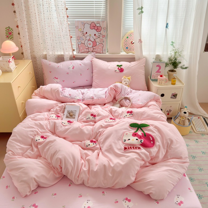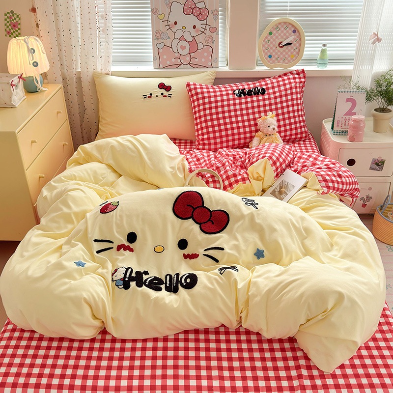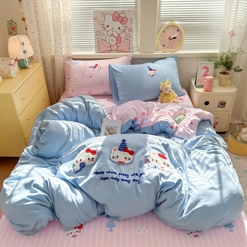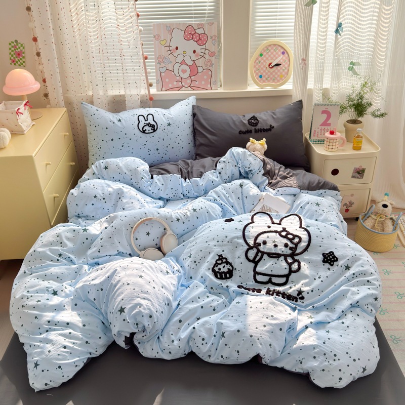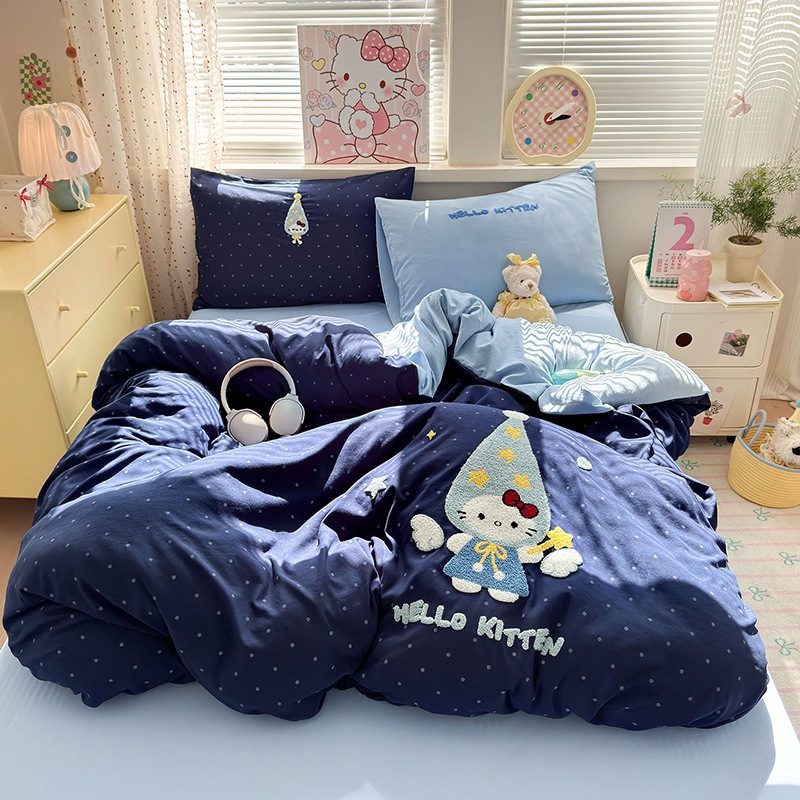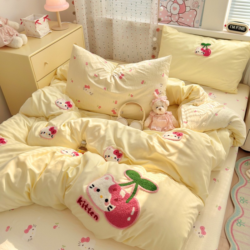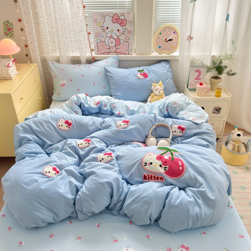 カートゥーン タオル刺繍 純綿 4点セット カバー シーツ 学生寮 3点セット a類 コットン100% ベッドリネン