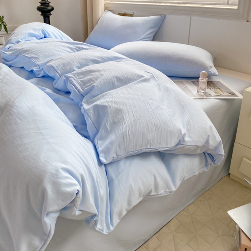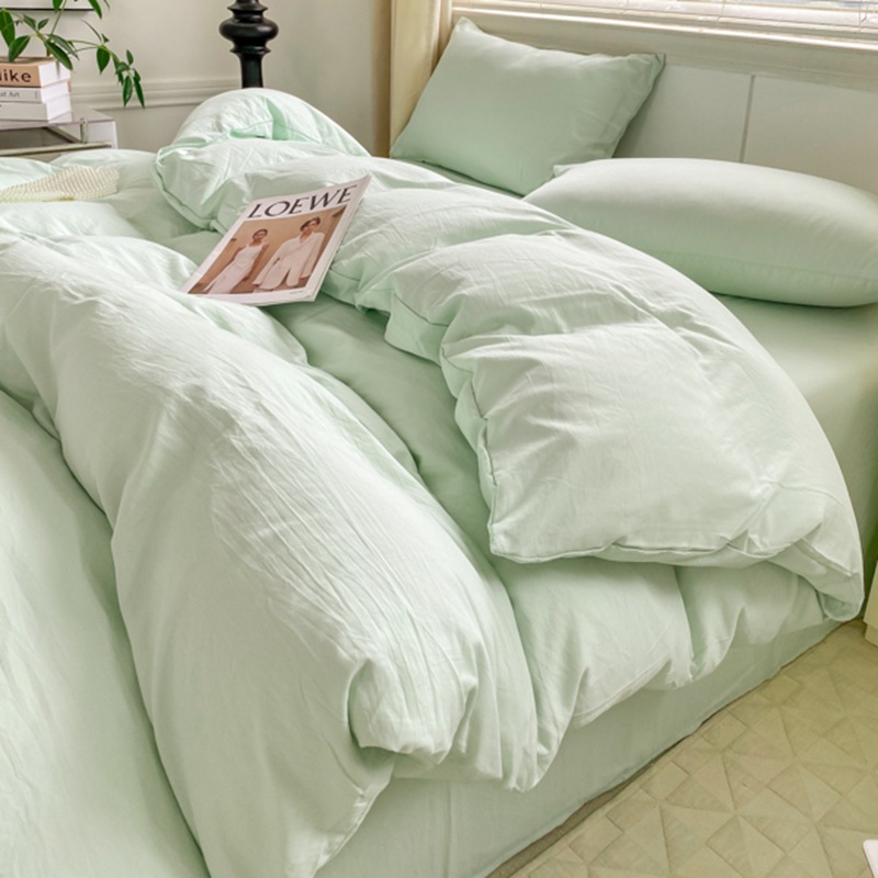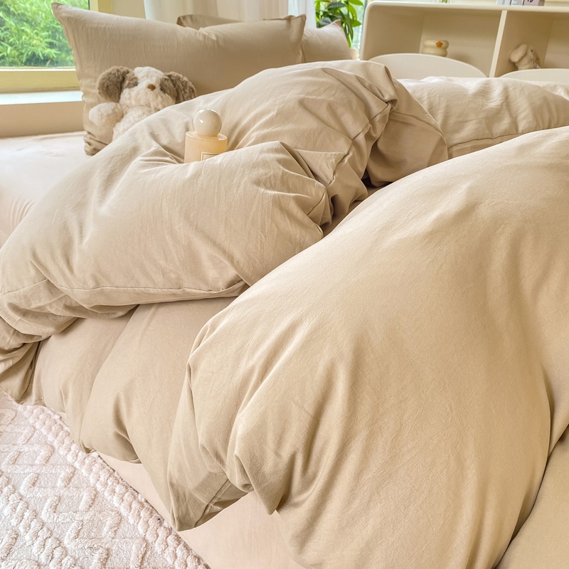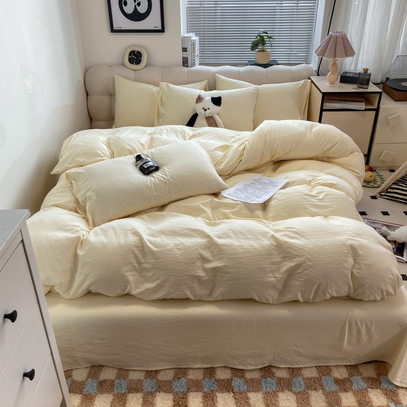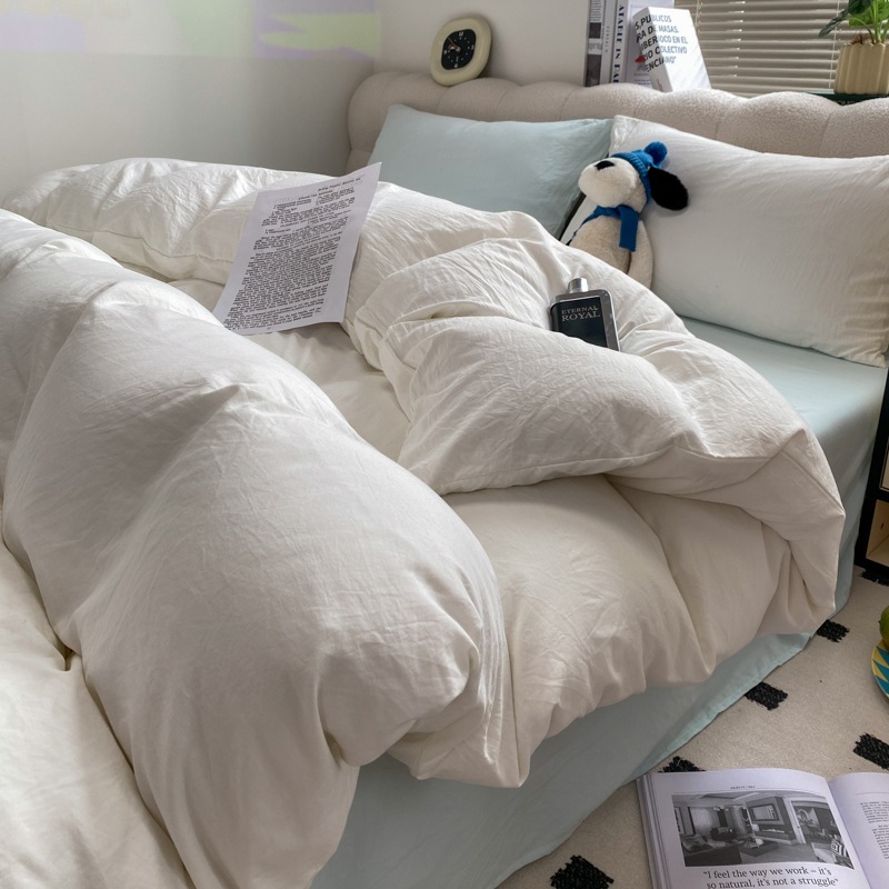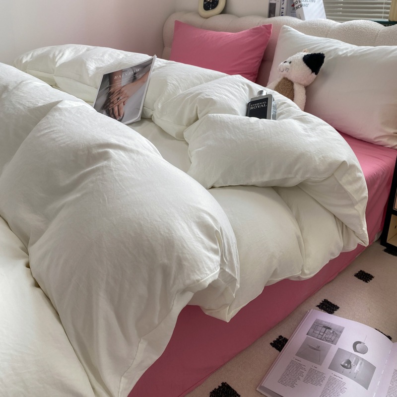 A類 素肌に優しい 純綿 4点セット 小清新 無地 超柔 水洗い綿 ボックスシーツ カバー 3点セット