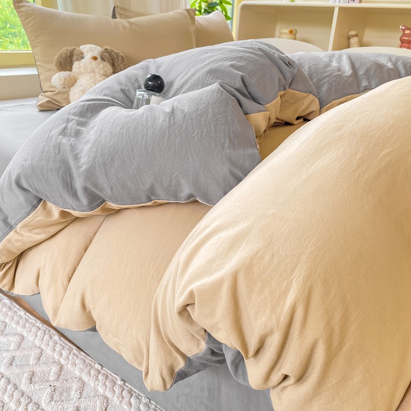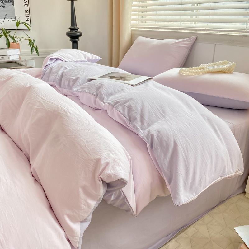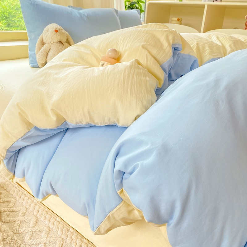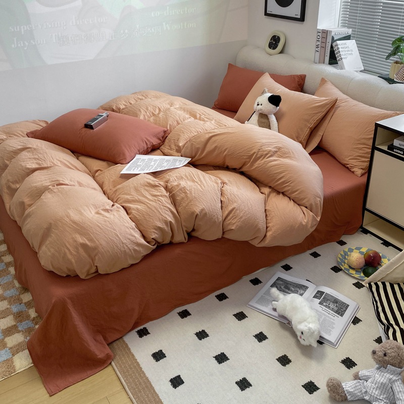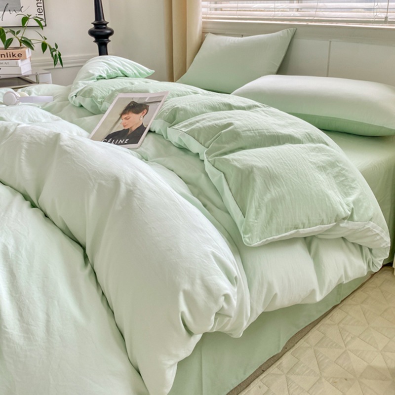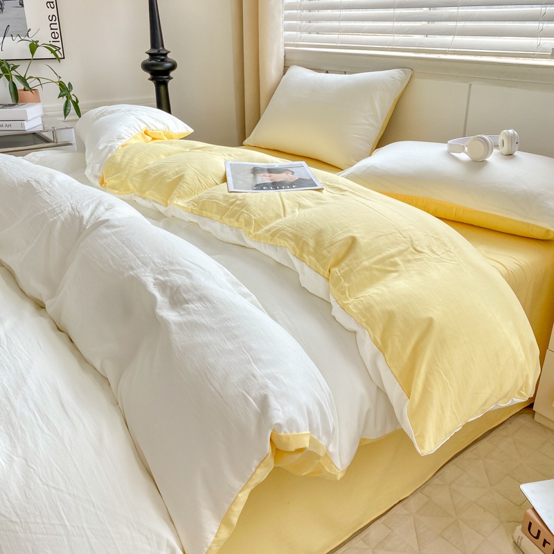 A類 素肌に優しい 純綿 4点セット 小清新 無地 超柔 水洗い綿 ボックスシーツ カバー 3点セット
