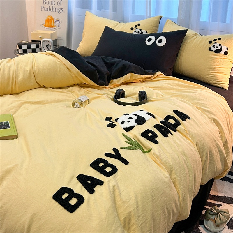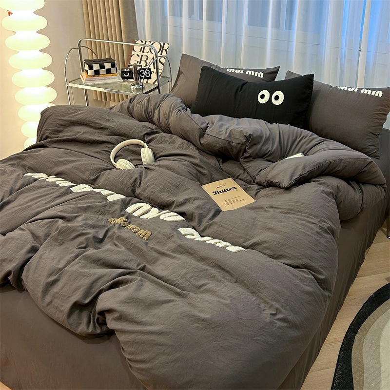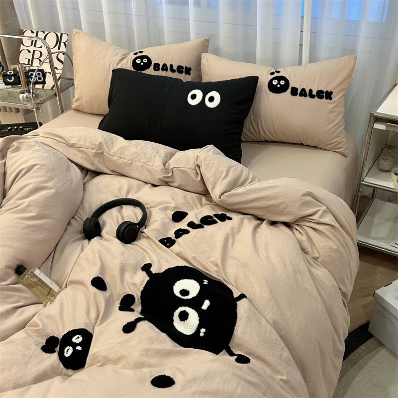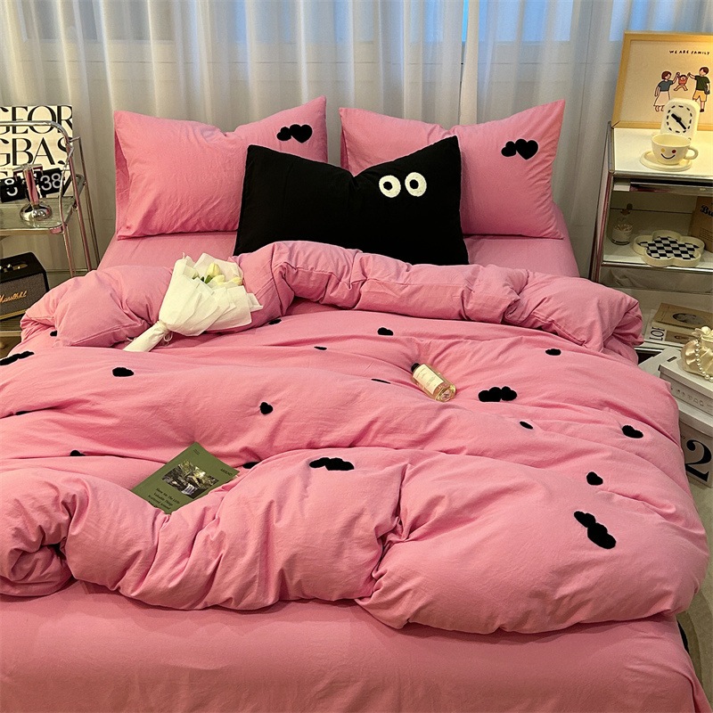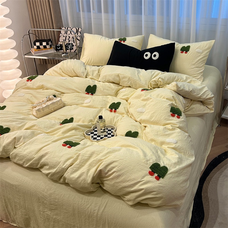 タオル刺繍 純綿 4点セット 小清新 コットン100% 刺繍 ボックスシーツ シーツ カバー 3点セット