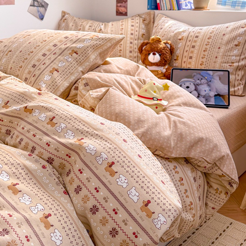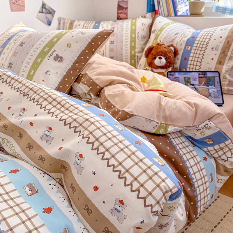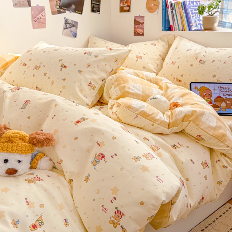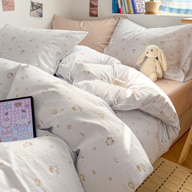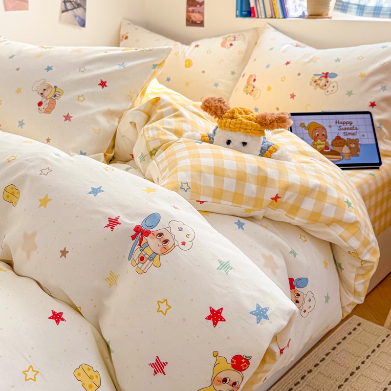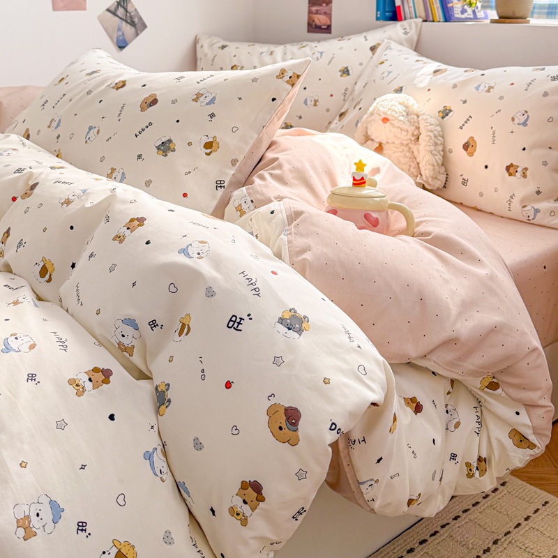 a類 コットン100% カートゥーン ベッド4点セット 小清新 かわいい 少女 純綿 カバー 学生 シーツ 3点